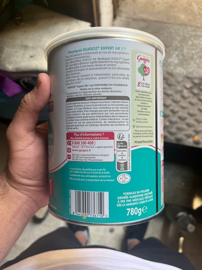 Lot de deux boîtes de lait guigoz AR amidon expert 1er age