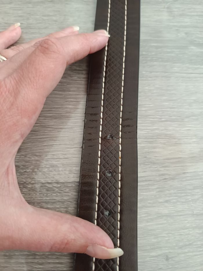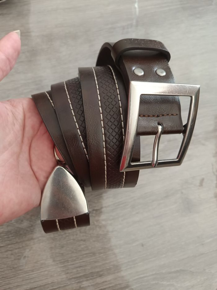 Je vends cette ceinture homme en cuir marron, idéale pour compléter votre garde-robe au quotidien. - Type de produit : Ceinture - Univers : Homme - Couleur : Marron - Matière : Cuir - Longueur : 115 cm - Fonctionnalités : Boucle carrée en métal, Piqûres de couture contrastantes Très bon état, peu portée N'hésitez pas à me contacter pour plus d'informations ou de photos supplémentaires.