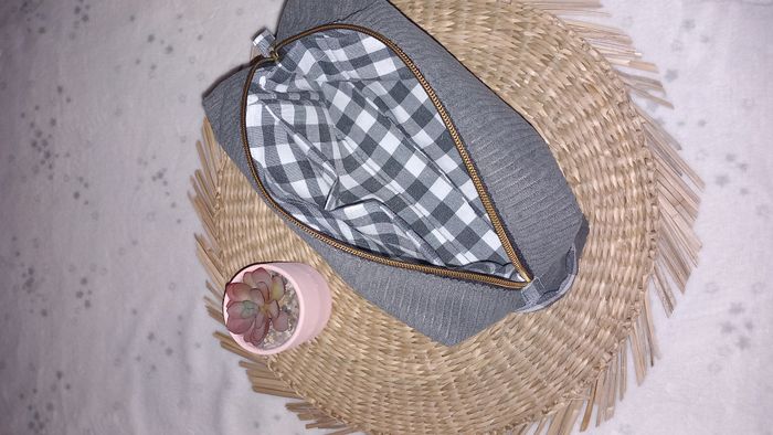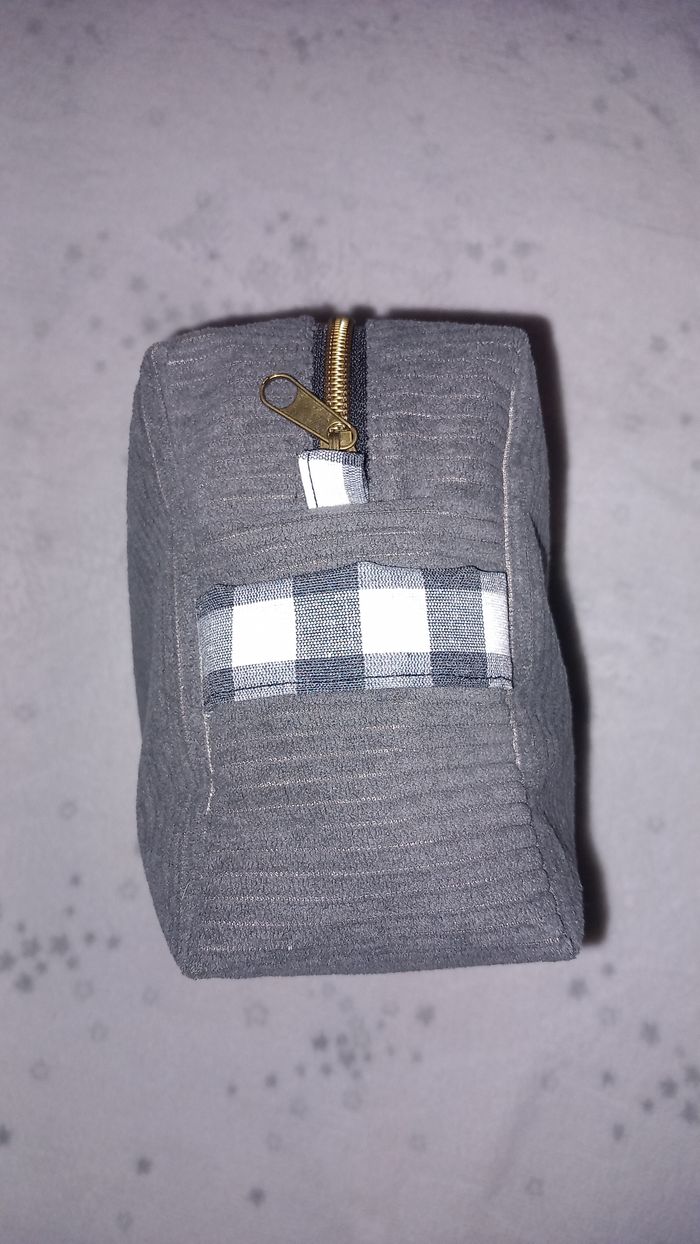trousse de toilette vichy grise