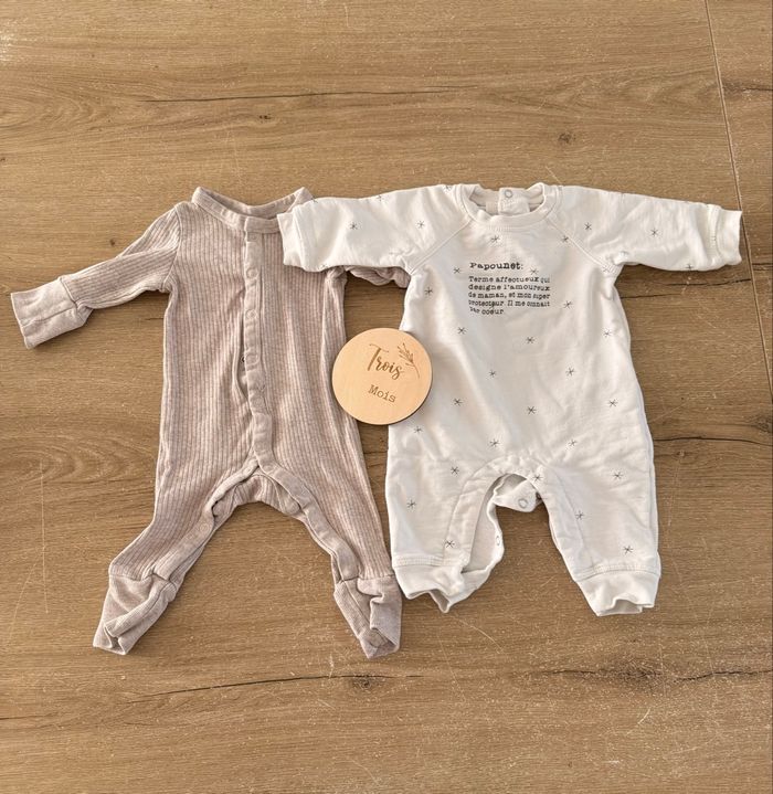 Lot de deux pyjamas sans pied en taille trois mois. Très bon état