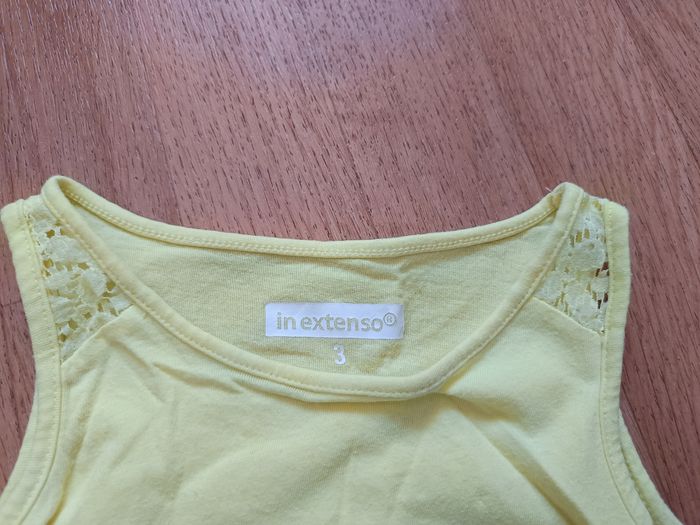 Haut In extenso en 3ans avec de la dentelle sur les épaules, jaune plus vif que sur les photos. Jupe Terre de marins en 2ans