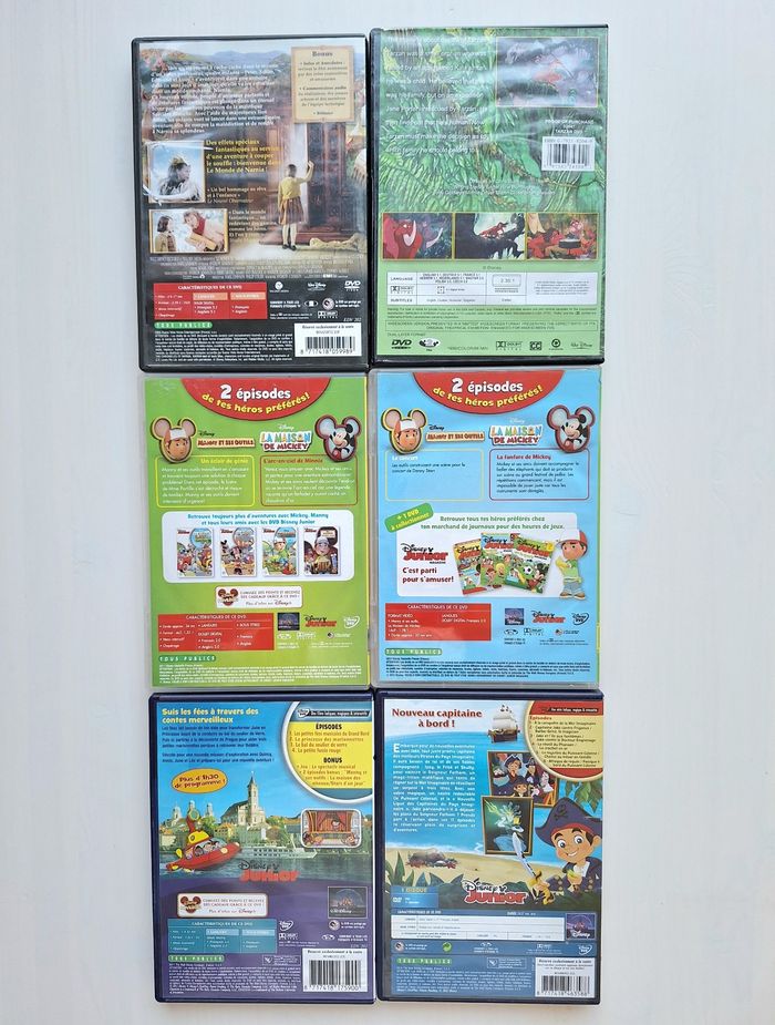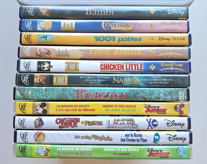Lot de 11 Dvd Disney Bambi n°5 1001 pattes n°51 Cendrillon 2 une vie de princesse n°63 La ferme se rebelle n°76 Chicken Little n°82 Le monde de Narnia Chapitre 1 Tarzan Capitaine Jack pirates a la conquête de la mer imaginaire Les petits Einstein sur la route des contes de fées La maison de Mickey L'arche en ciel de Minnie La maison de Mickey La fanfare de Mickey Les Disneys numérotés 2€50 pièce Les autres 1 € piece Ou le lot pour 15 euros Micro rayures sur plusieurs mais tous testés et ils fonctionnent parfaitement. #dvd_liilymnr