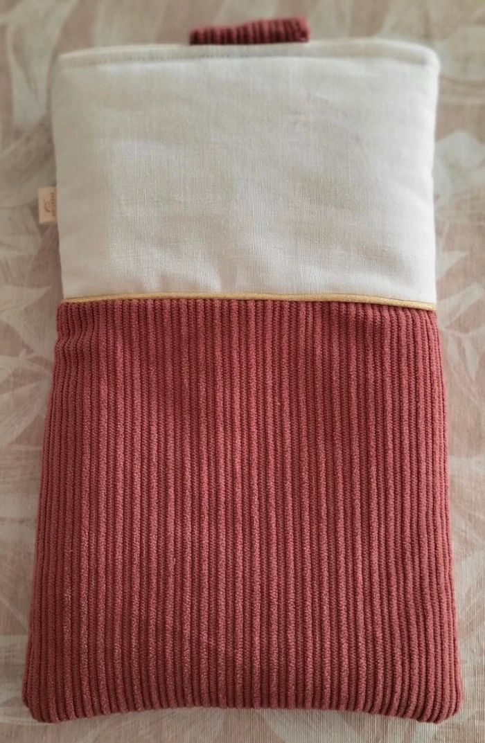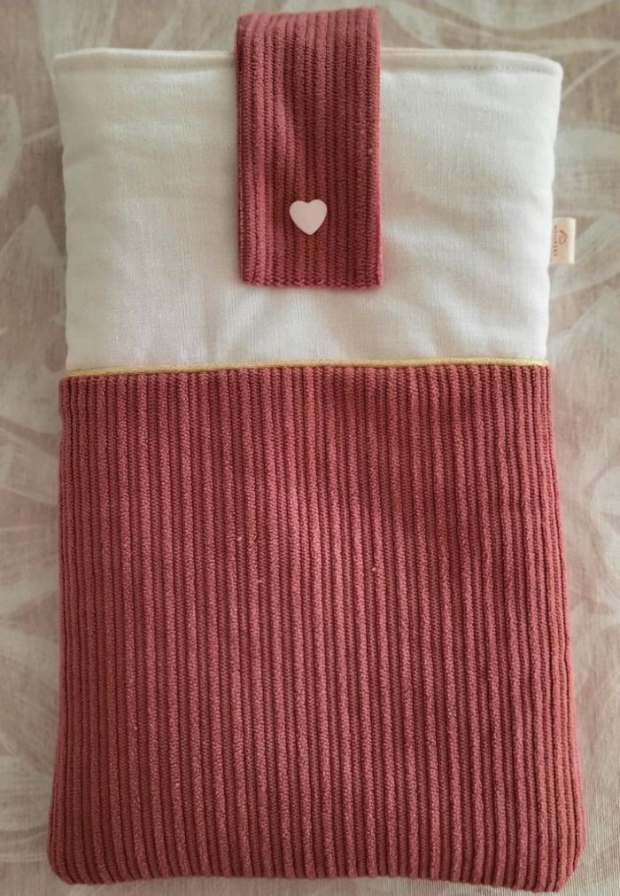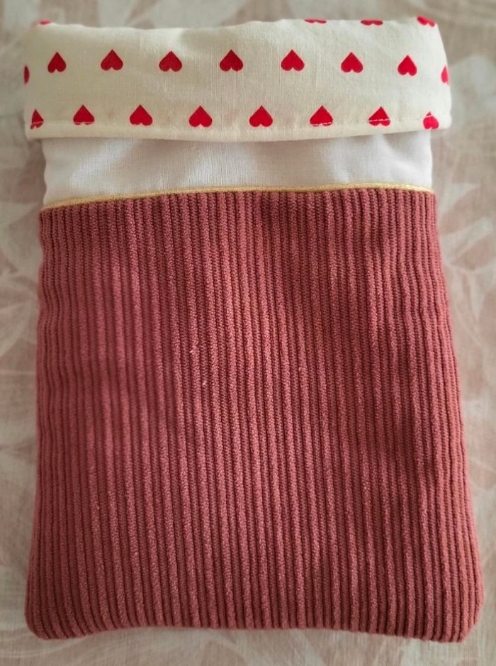 Pochette velours vieux rose et blanc (coton) .Neuve. fait main.
