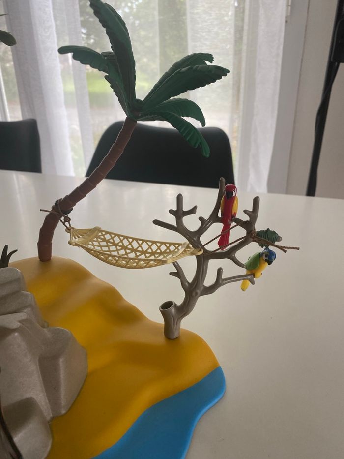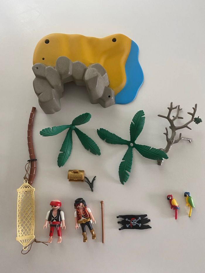 Un Playmobil a pris un coup de chaud sur la tête, mais que s’est il passé sur l’île 😅 Blague à part le Playmobil avait été mis sur le gâteau bateau pirate que j’avais fait pour l’anniversaire de mon fils et une bougie lui a malencontreusement brûlé le crâne… Reduction sur lots
