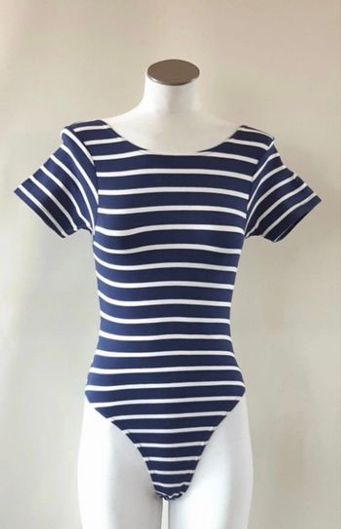 Body rayé marine & blanc. Aucune pression entre jambes, taille L . #body