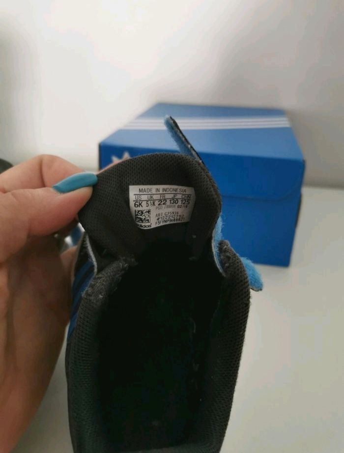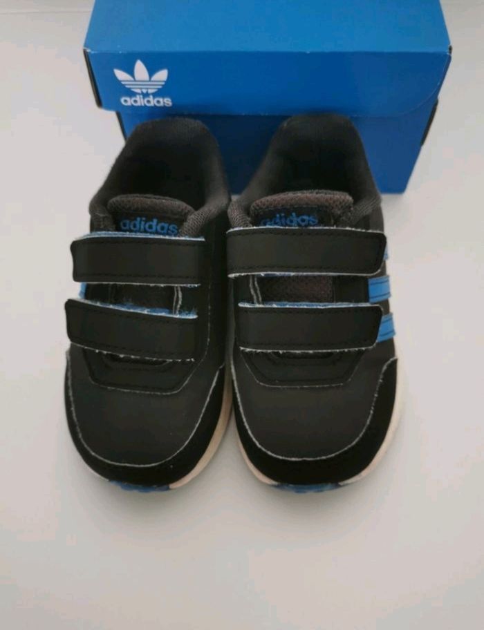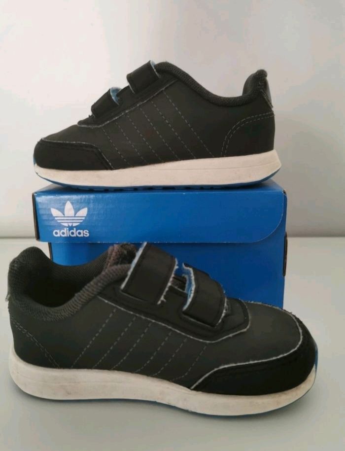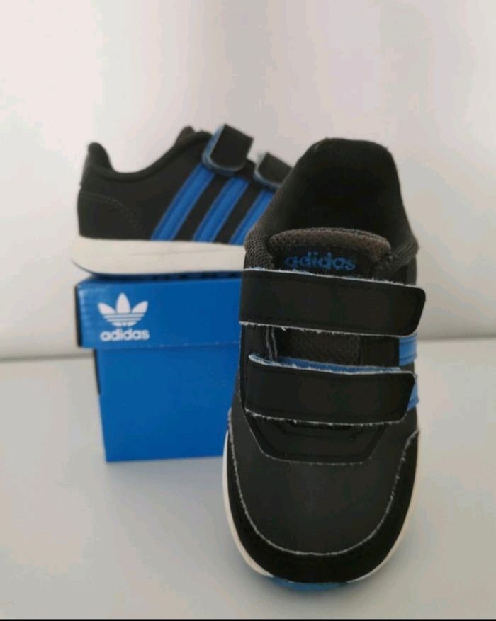 Tennis de marque adidas, en taille 22, de couleurs Noir et Bleu, en bon etat