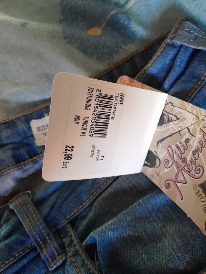 Très beau Jean pour femme coupe droite taille 50 élastique neuf couleur bleue marine Acheté en boutique mais non essayé il y a 2 semaines Grandes poches arrières. Trop grand.. Prix indiqué dessus. Envoi rapide et soigné