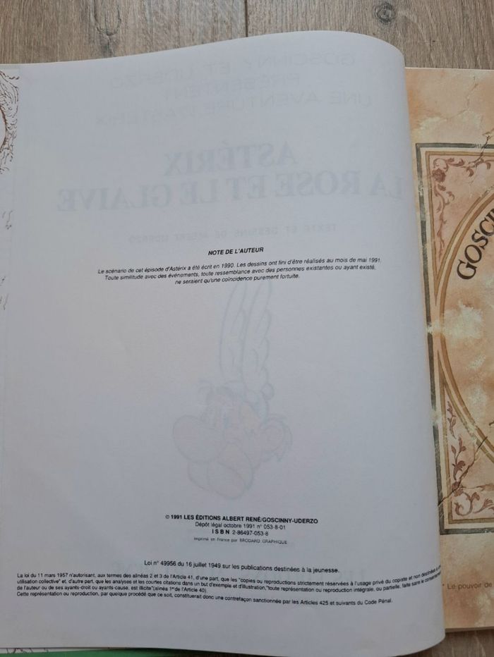 Vends l'album "La Rose et le Glaive", tome 29 de la collection. Il s'agit du tirage original d'octobre 1991, une pièce historique car c'est l'un des premiers albums entièrement réalisés par Albert Uderzo seul. ​L'ouvrage est vendu dans son jus : il a vécu et porte les marques du temps (coins et couverture légèrement frottés), idéal pour ceux qui aiment les livres qui ont une âme et une patine d'époque. ​Dépôt légal : Octobre 1991 (Éditions Albert René). ​Contenu : Intérieur complet, incluant la célèbre page de garde hommage à Goscinny. ​État : Authentique, avec l'usure naturelle d'un livre de plus de 30 ans.