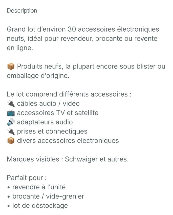 Lot revendeur 30 pièces accessoires électroniques Neuf Câble, adaptateur, prise - photo numéro 1