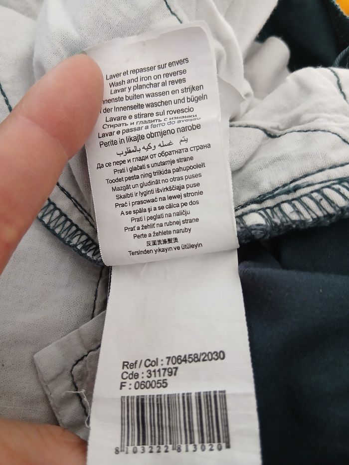 Peu porté. Vert-bleu foncé. Pas de défaut. Tissu fin.
