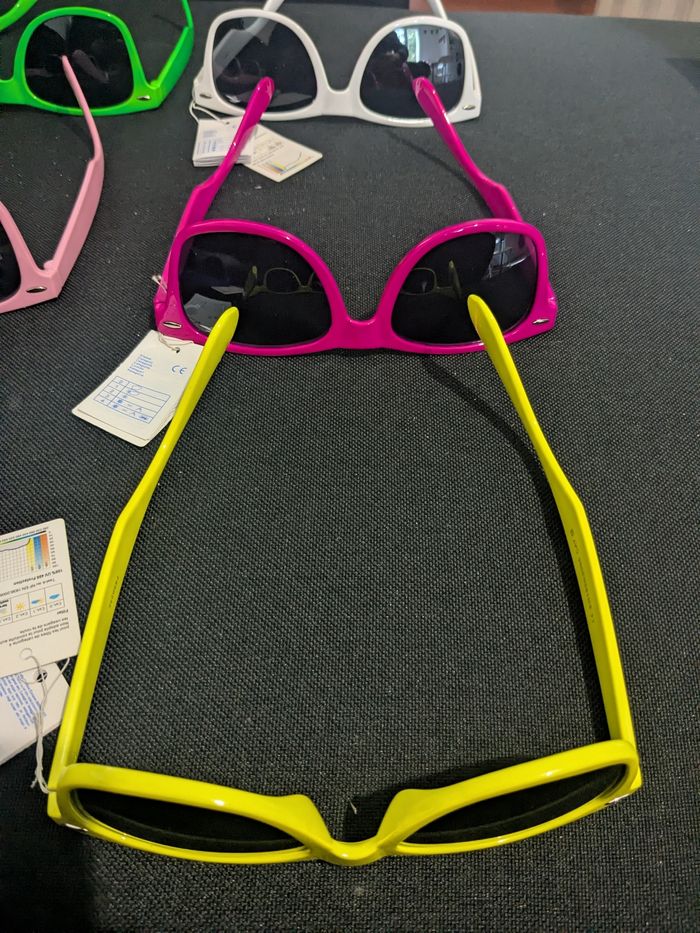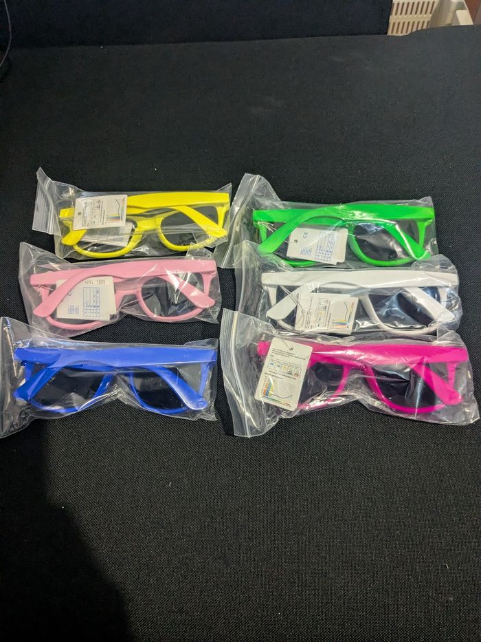 Je vends 6 paires de lunettes neuves avec étiquettes, dans différentes couleurs. - Type de produit : Lunettes - Univers : Mixte - Couleurs : Multicolore - État : Neuf avec étiquette Ces lunettes sont neuves avec leurs étiquettes. N'hésitez pas à me contacter pour plus
