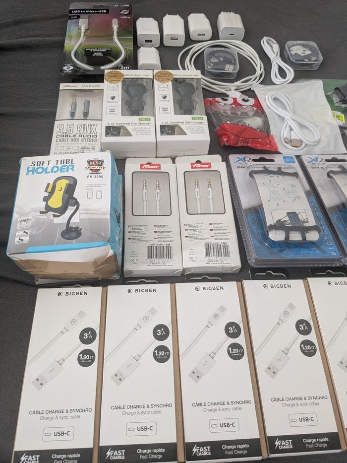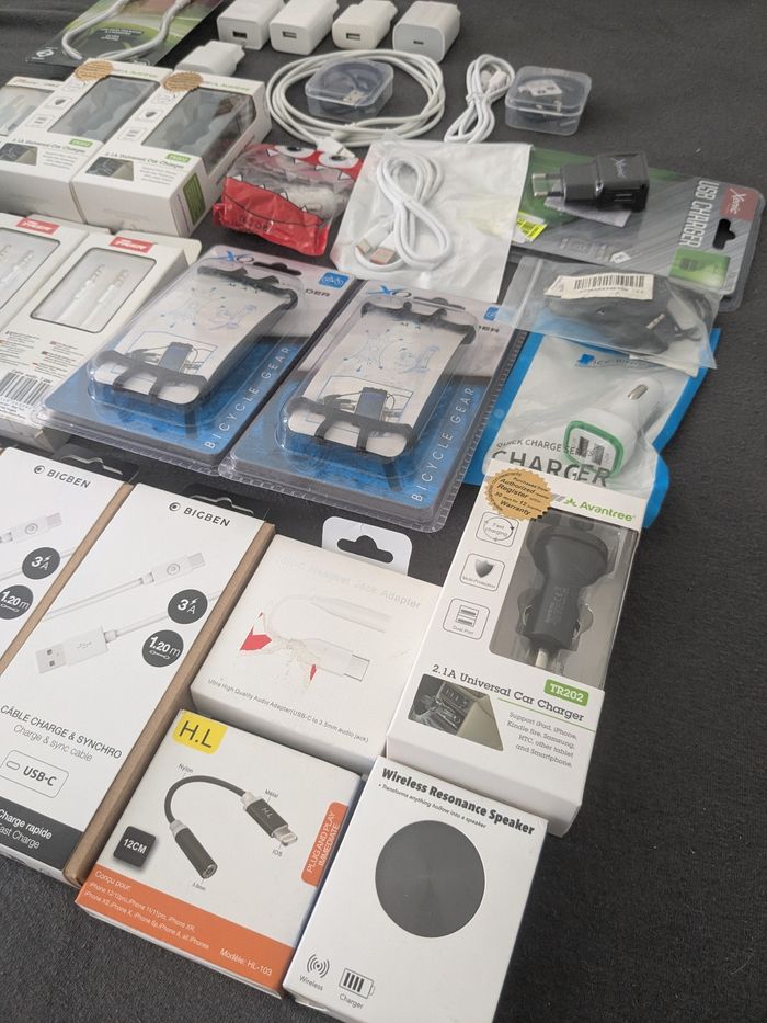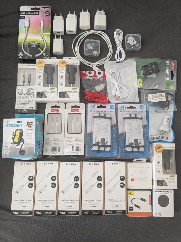 Lot revendeur 30 pièces accessoires électroniques Neuf Câble, adaptateur, prise