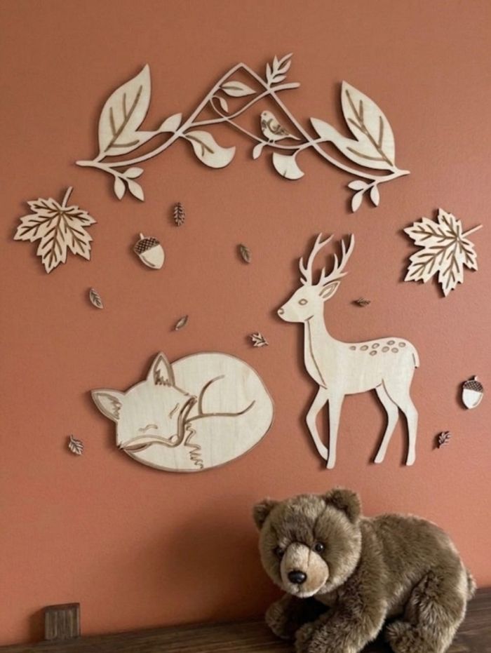 Titre : Pack Déco Bois "Forêt" 🦊 Cerf, Renard & Branche | Murale Enfant Description : Transformez la chambre de votre enfant en un véritable sous-bois enchanté ! Ce set complet en bois clair apporte poésie et douceur à votre décoration murale. Ce lot de 15 pièces comprend : • 🦌 Le Cerf majestueux : 25 x 15 cm. • 🦊 Le Renard endormi : 11 x 18 cm. • 🌿 La Branche canopée centrale : env. 35 x 20 cm. • 🍃 Le set de détails : 2 grosses feuilles (7 et 10 cm), 2 glands (4 cm) et 8 petites feuilles volantes (1 à 2 cm). ✨ Qualité : Bois naturel aux gravures fines. ⚡ ENVOI RAPIDE ET SOIGNÉ : Expédition sous 24h/48h. Emballage ultra-protégé dans un carton rigide pour que chaque petite feuille arrive intacte !