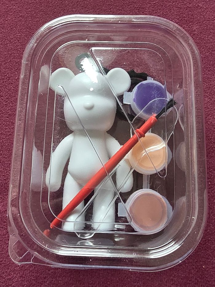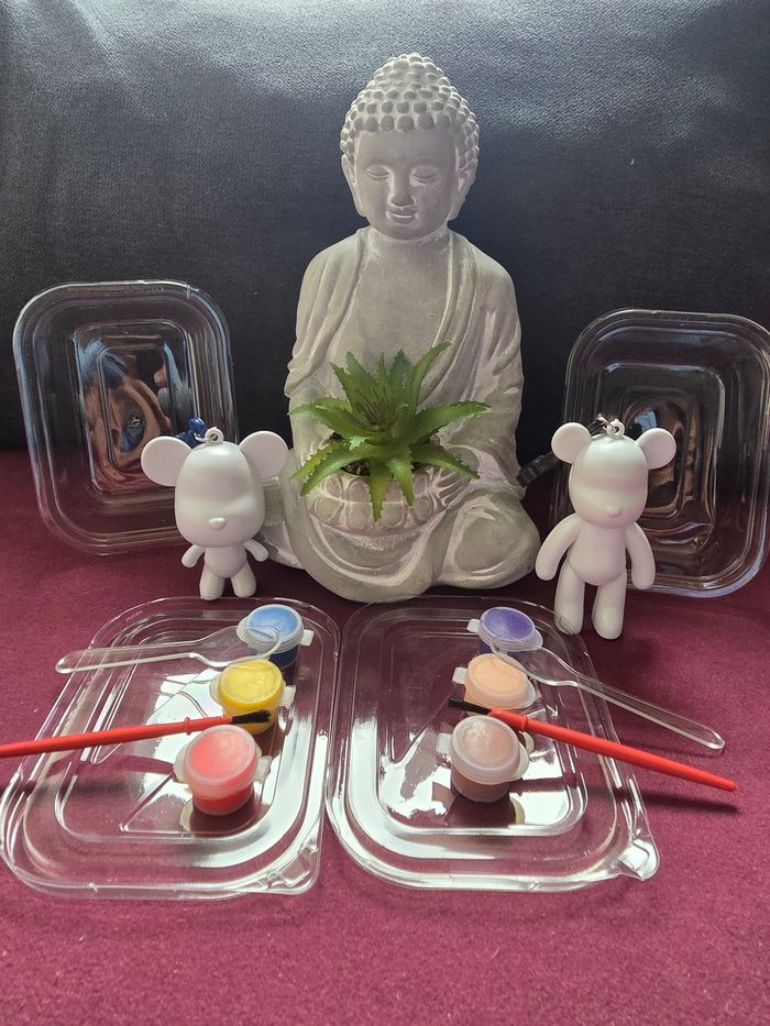 Petit kit créatif pour enfants comprenant une figurine ourson à peindre avec ses pots de peinture et pinceau 🎨 Idéal pour occuper les enfants tout en développant leur créativité. Une fois peint, l’ourson peut être accroché en porte-clé (parfait pour cartable ou clés des parents 😉). Produit neuf, jamais utilisé. Facile à faire et super idée cadeau ou activité calme à la maison. N’hésite pas si tu as des questions 👍