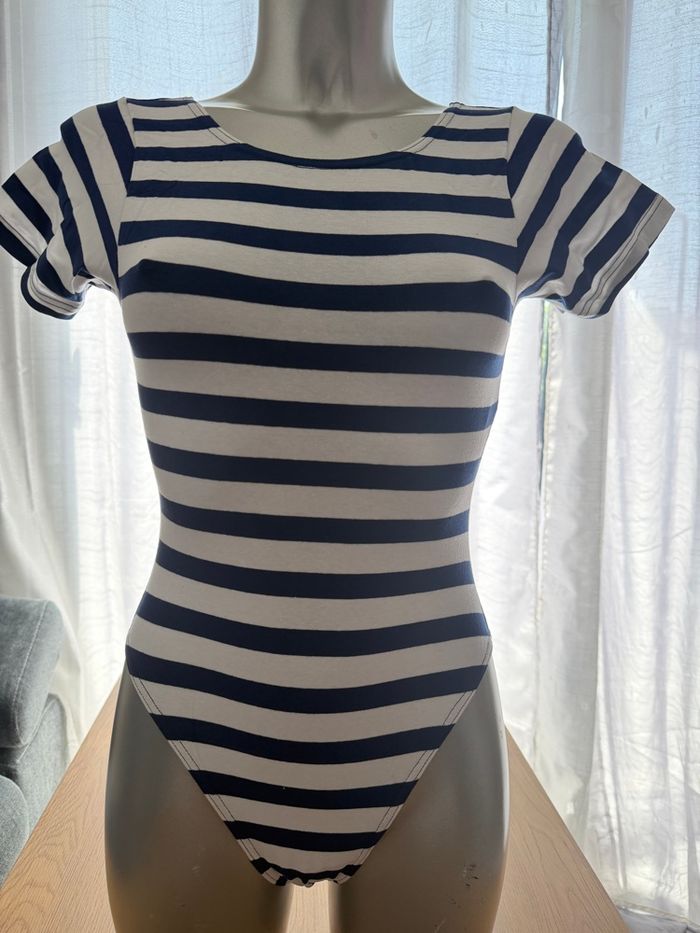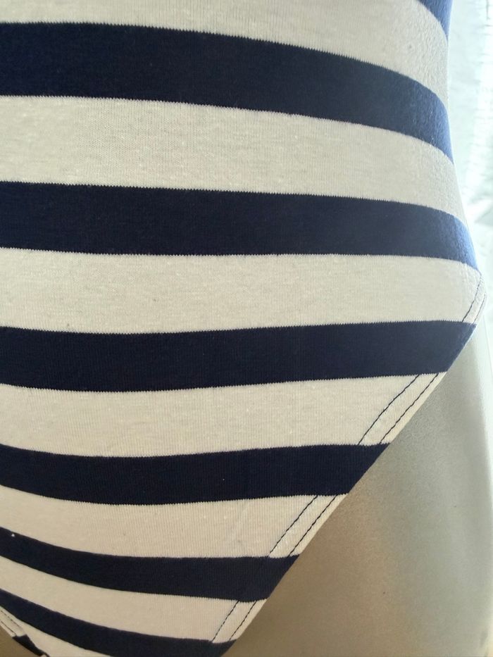 Body rayé marine et blanc , aucun e pression entrejambe , 90 % coton , 10 % elasthane , taille L