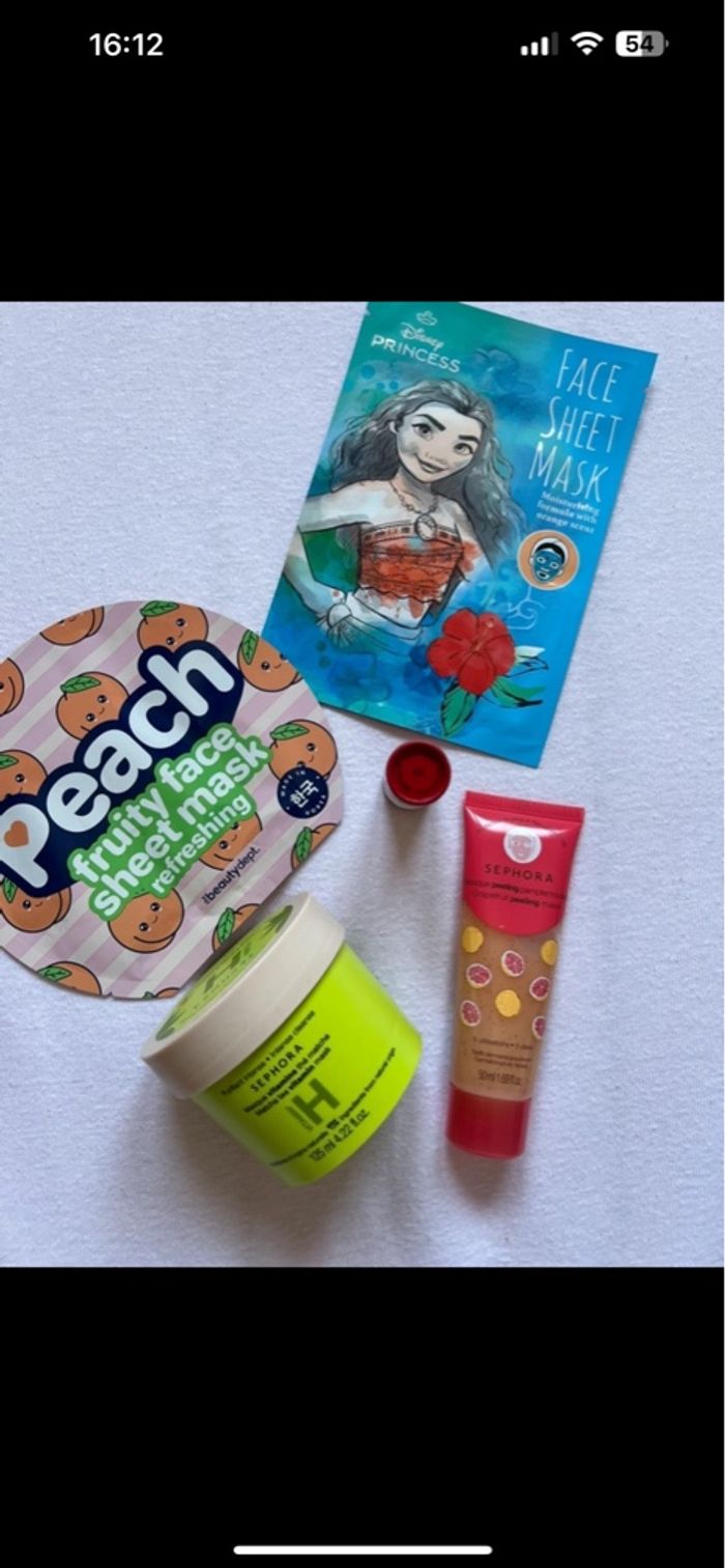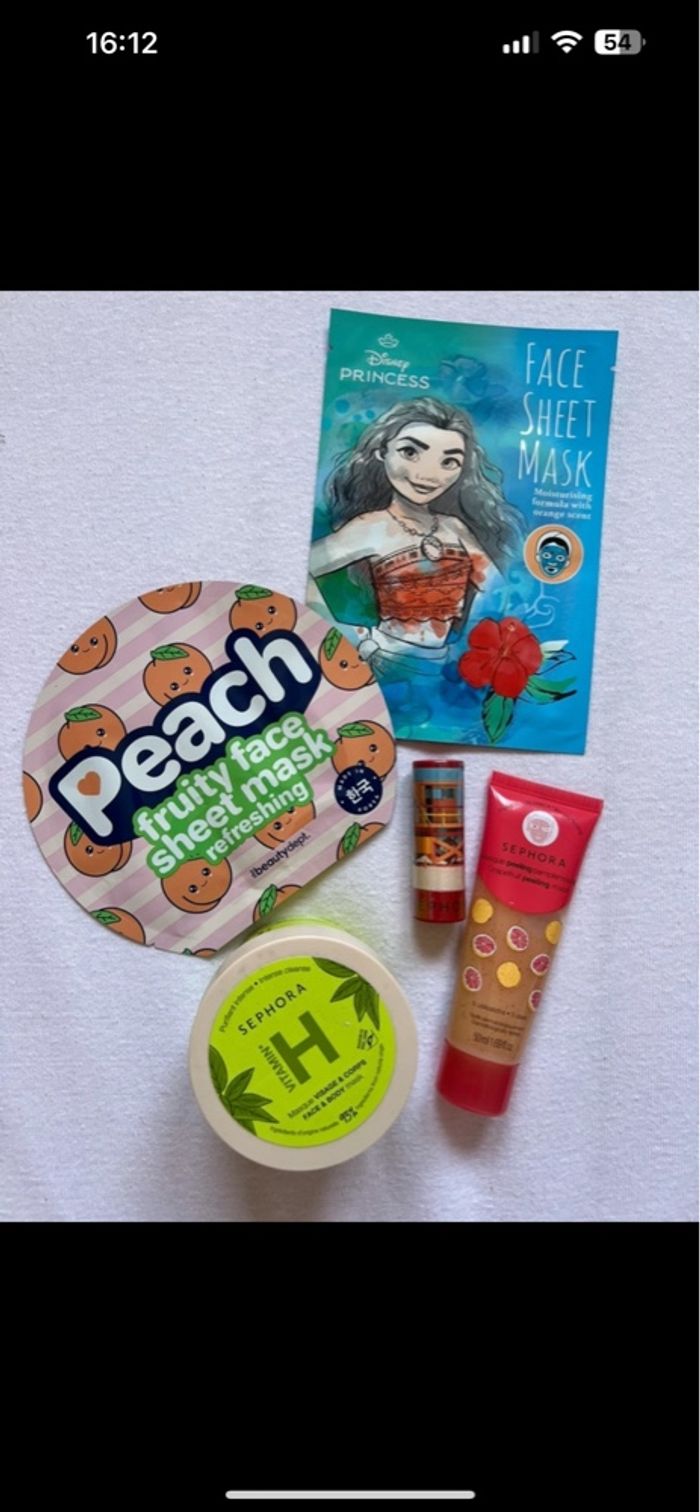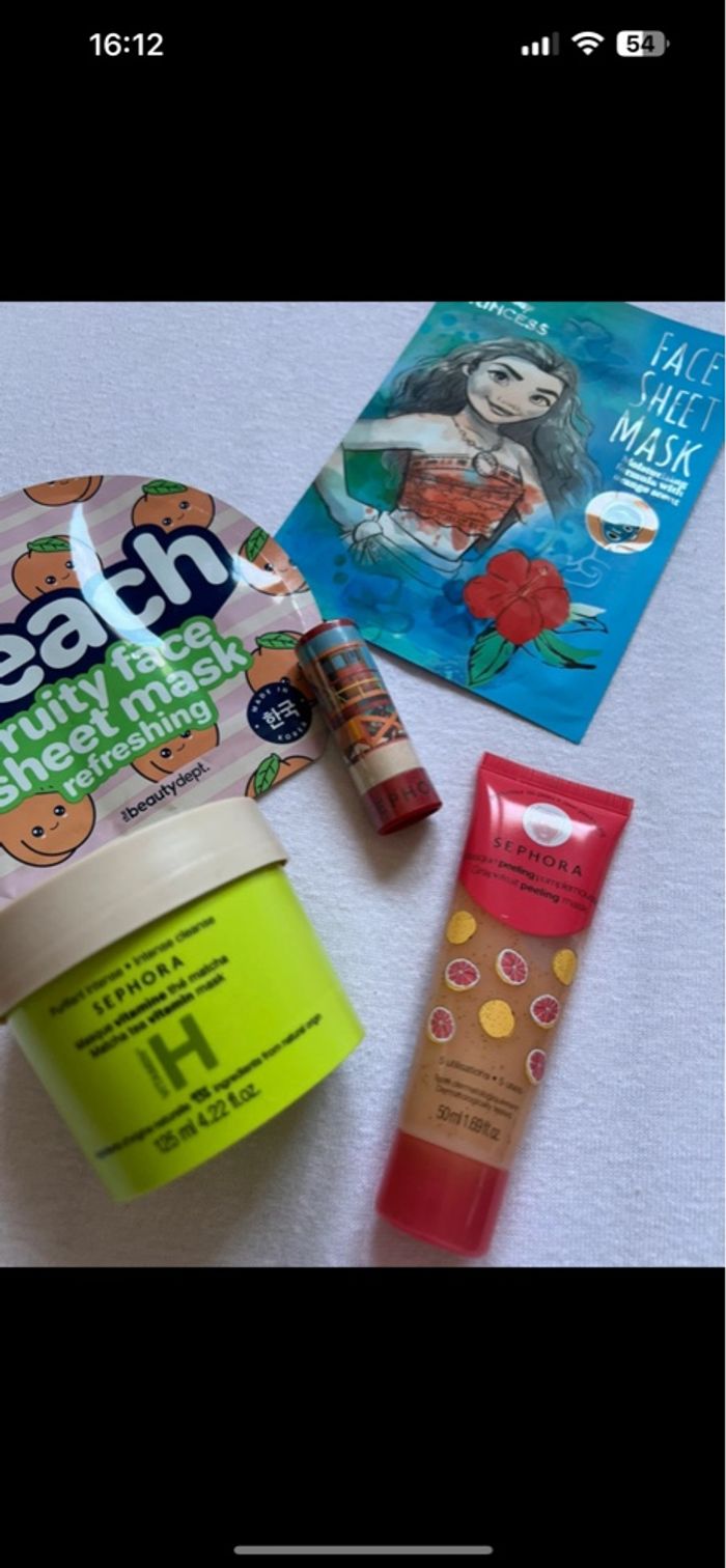 Je vends ce joli lot de soins visage comprenant plusieurs produits pour une routine complète 🧴✨ ✔️ Produits inclus : • Masque visage Sephora (pot vert) • Gommage visage Sephora pamplemousse • Rouge à lèvres Sephora • Masque tissu fruit (refreshing) • Masque tissu princesse ✔️ État : neuf ✔️ Idéal pour se faire un moment cocooning ou tester plusieurs soins 💡 Parfait aussi comme petit cadeau 🎁 📦 Envoi rapide et soigné