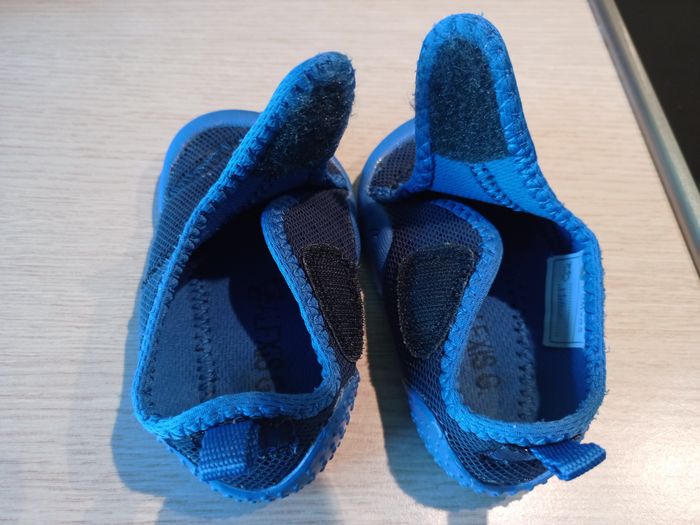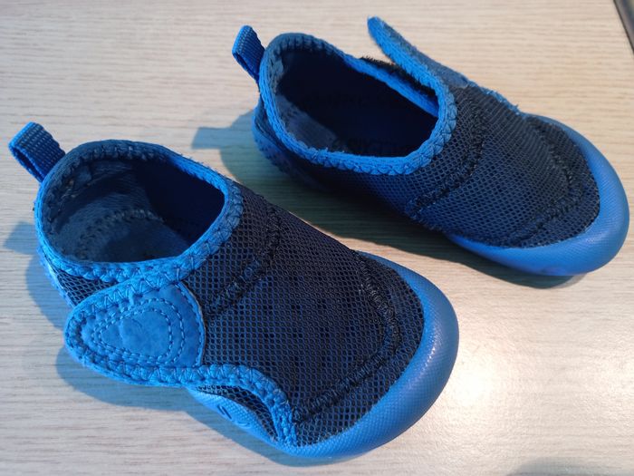 Chausson enfant pointure 24, antidérapant et respirant enfant, modèle Baby Light de DOMYOS / DECATHLON - Génération précédente à celle actuellement en magasin. Couleur : Bleu Encore en très bon état, vendus lavés, le prénom au fond s'en ira avec les lavages. J'ai découpé la grosse étiquette inconfortable avec la taille dsl. Description du fabricant : - aide au développement psychomoteur. Une meilleure accroche et de meilleurs appuis améliorent équilibre et motricité. - aide à l'autonomie. Repérage pied droit/pied gauche, patte auto-agrippante et large ouverture. - respirabilité. La matière du chausson laisse passer l'air pour plus de confort. - flexibilité. Une semelle hyper souple, pour suivre tous les mouvements du pied. - adhérence. Bonne accroche grâce à la semelle antidérapante en silicone. Envoi rapide et soigné, n'hésitez pas si vous avez des questions. J'ai d'autres articles à petits prix dans mon dressing, profitez-en pour faire un lot.