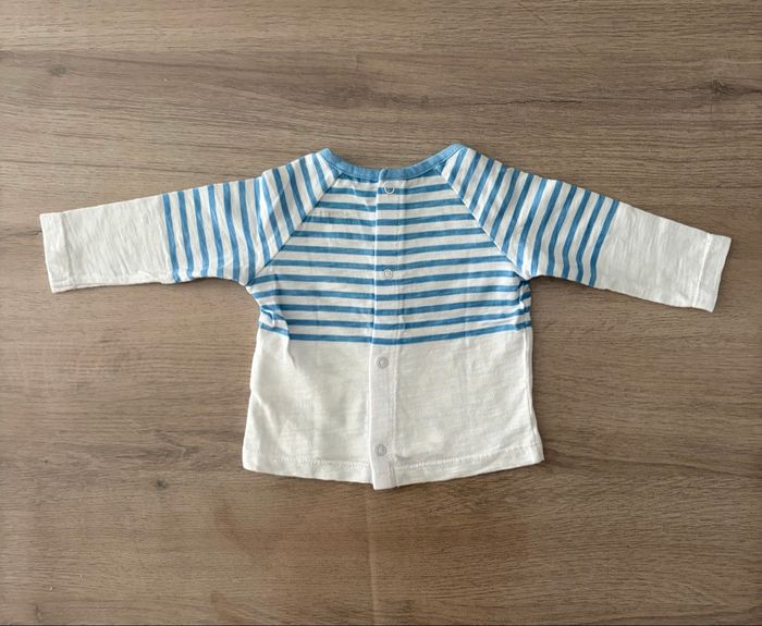 Vends haut bébé garçon Marque : orchestra Taille : 1mois (54cm) Couleur : blanc, bleu En très bon état, voir photo