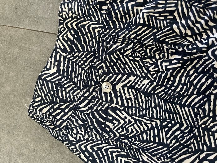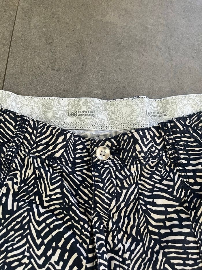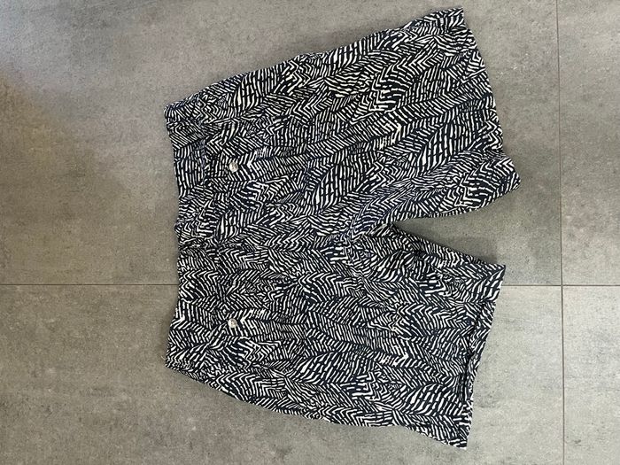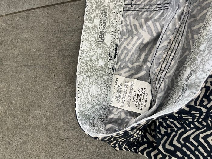 Short de la marque Lee avec un imprimé graphique noir et blanc très tendance. Coupe confortable avec taille "comfort waistband" pour un bon maintien. Fermeture par bouton et zip, passants pour ceinture, poches à l'avant. Taille 20W= FR 50 État : très bon, peu porté Matière : coton (léger et agréable à porter) Parfait pour l'été, facile à associer avec un t-shirt ou une chemise pour un look casual. N'hésite pas si tu veux plus de photos ou d'infos