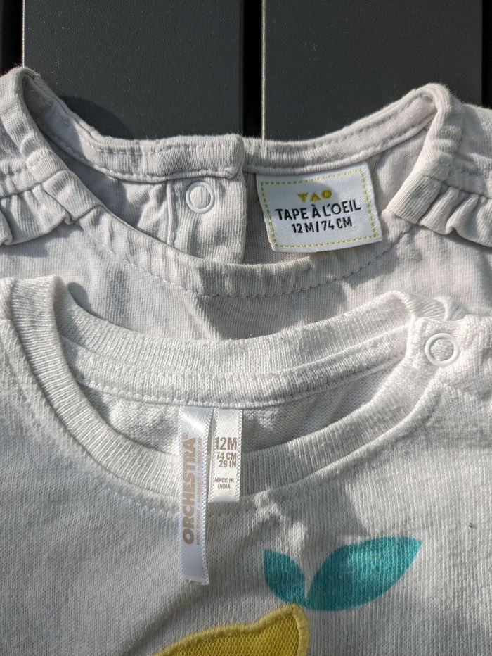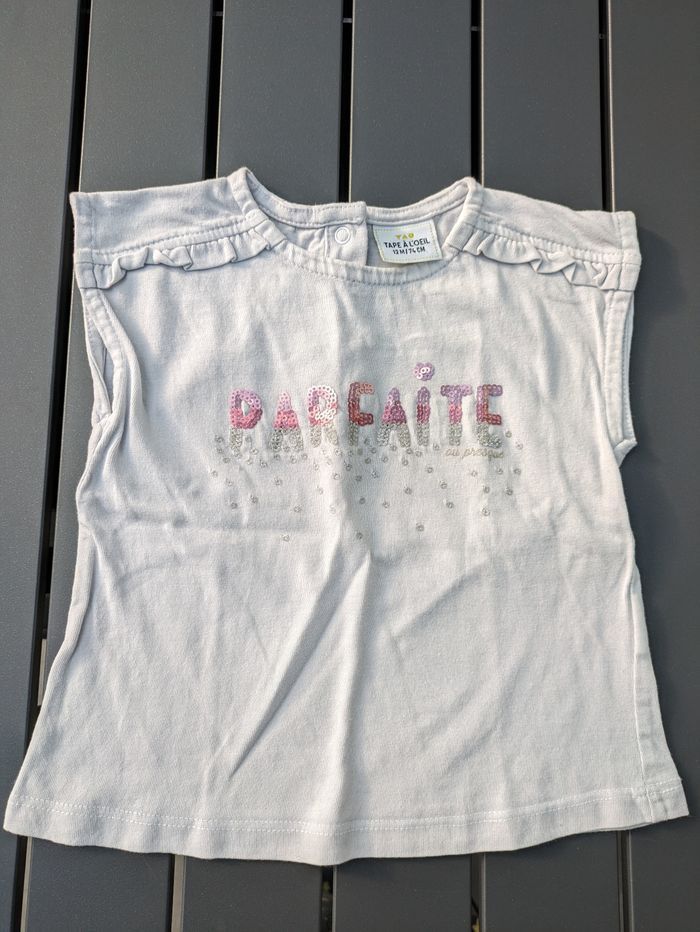 Lot 2 t shirts été blanc sequins  fille 12 mois-1 an - photo numéro 4