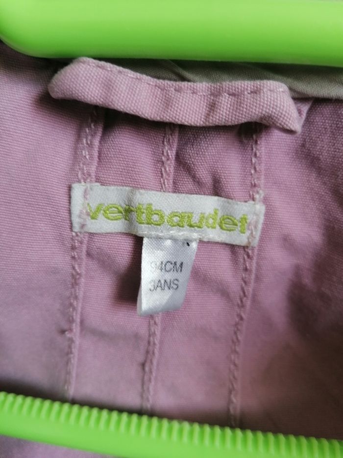 Bonjour, Je vends ce lanteau/veste légère VertBaudet pour fille 3 ans. Attache par fermeture éclaire et pressions devant. Resserable à l intérieur.