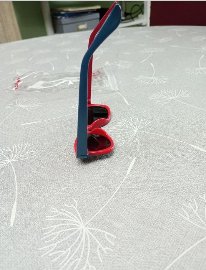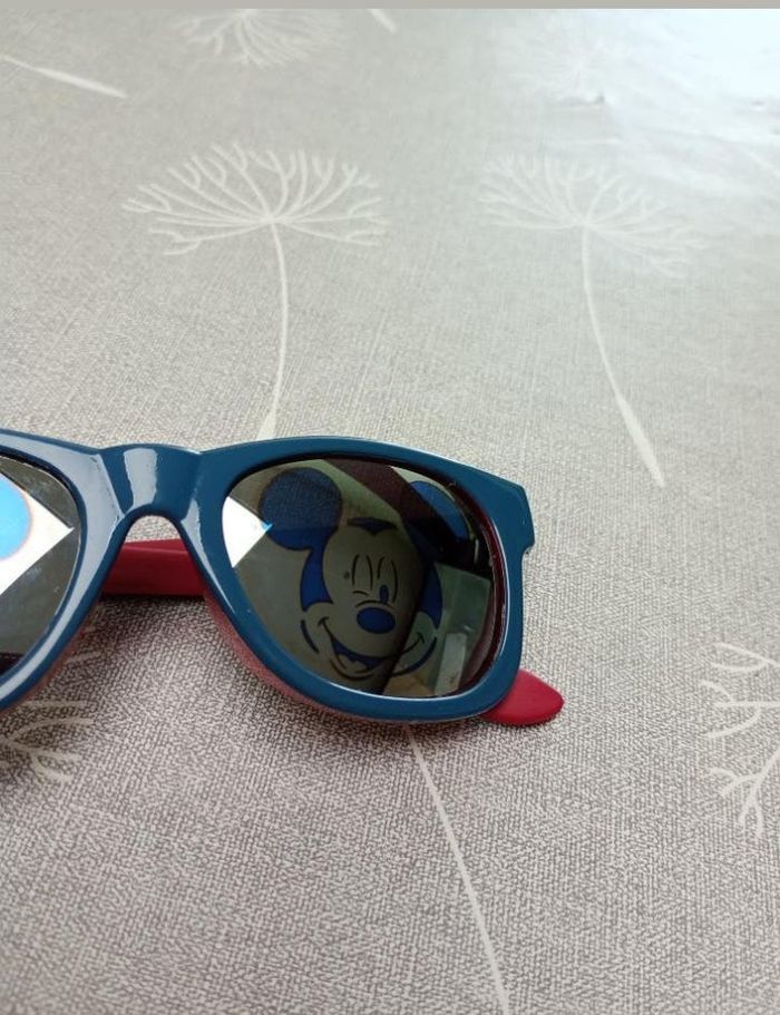 Lunettes de soleil avec reflets de Mickey. Longueur monture : 10,5 cm. Longueur branches : 11 cm. Protection UV catégorie 4. Marque : Orchestra. Etat impeccable. Bac 29