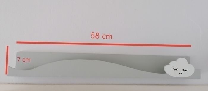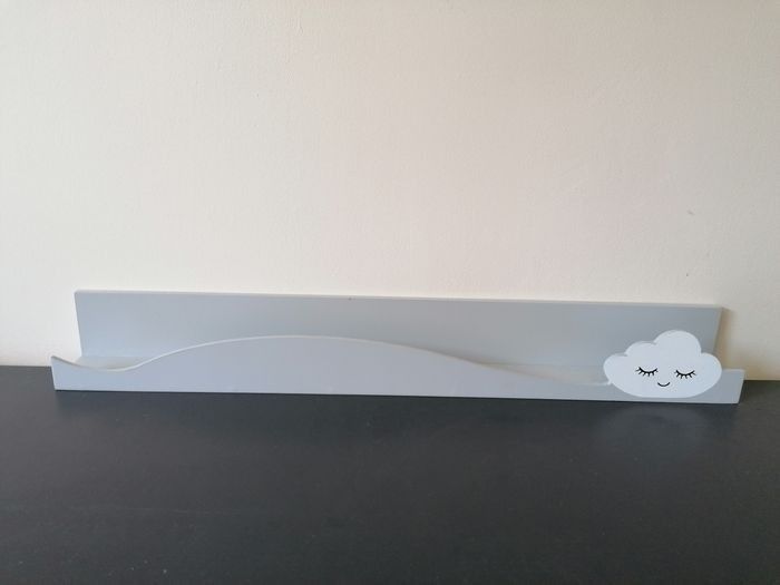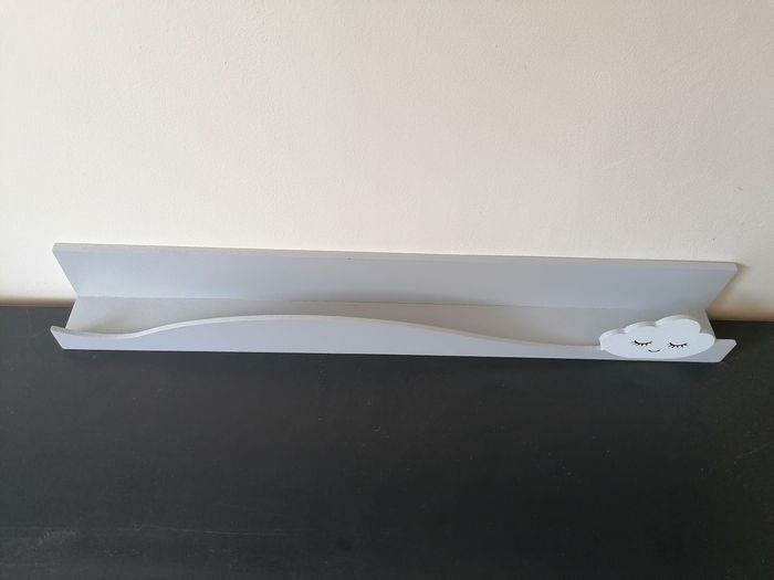 Bonjour, Je vends cette étagère murale à motif nuage pour enfant en très bon état général à l exception d une imperfection au bord derrière l étagère. Dimensions (environ) : Longueur 58 cm Largeur 6 cm Hauteur 7 cm