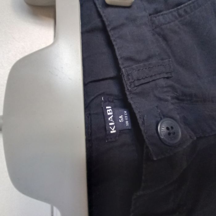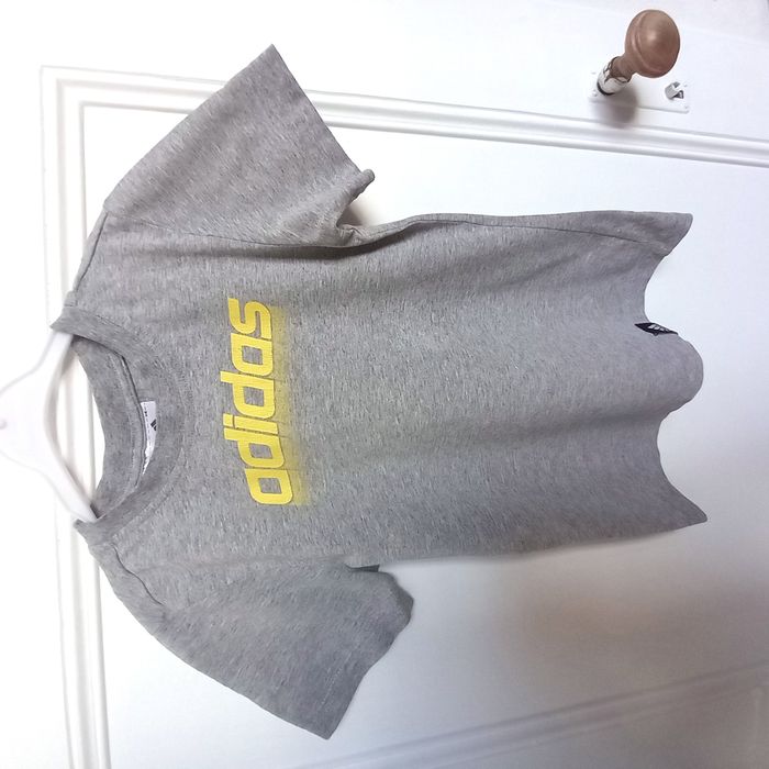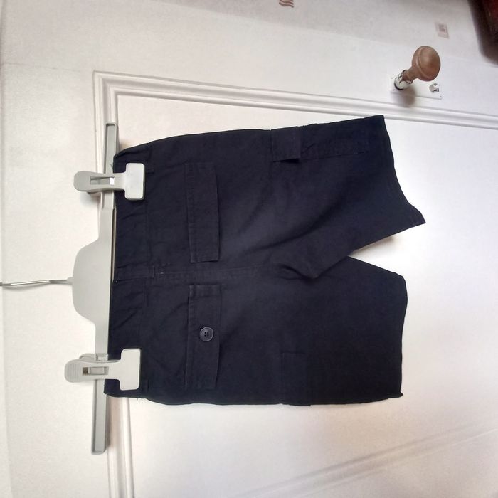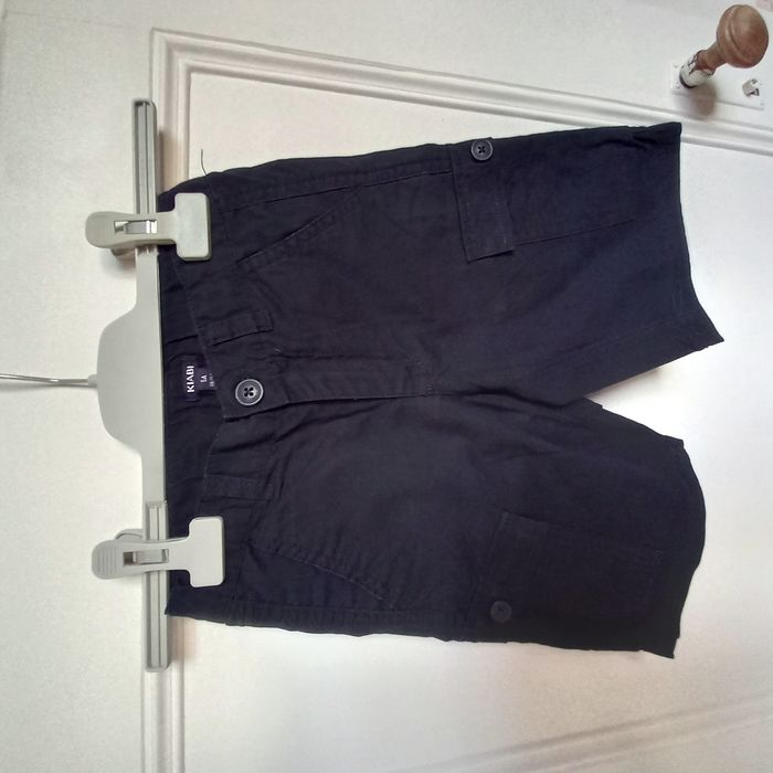 - 1 T-shirt Adidas, très bon état - 1 bermuda bleu marine Kiabi, 2 poches sur le côté, 2 poches devant et 2 poches derrière. Il MANQUE un bouton sur 1 poche arrière(voir photo). Fermeture du bermuda par bouton, bon état. - 1 bermuda camel Kiabi avec un défaut sur la jambe droite avant (voir photo). 2 poches sur le devant et 2 fausses poches derrière. Fermeture du bermuda par pression, bon état. #adidas - 1 bermuda gris anthracite in extenso, très bon état sauf un lien qui est détressé (voir photo)