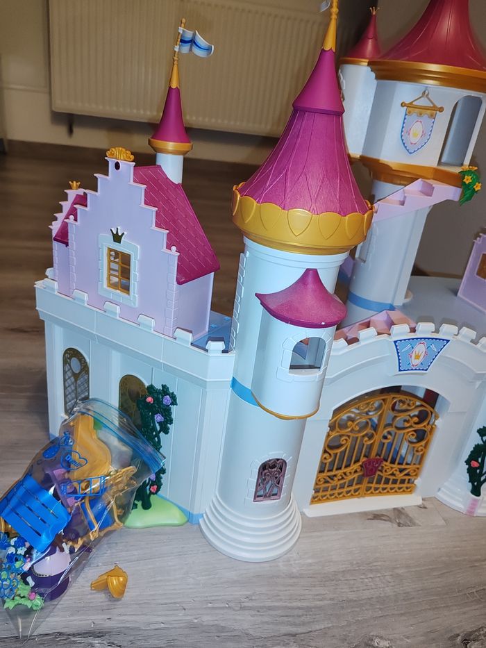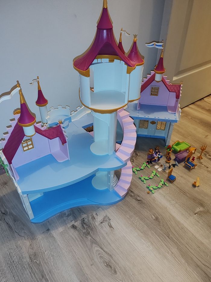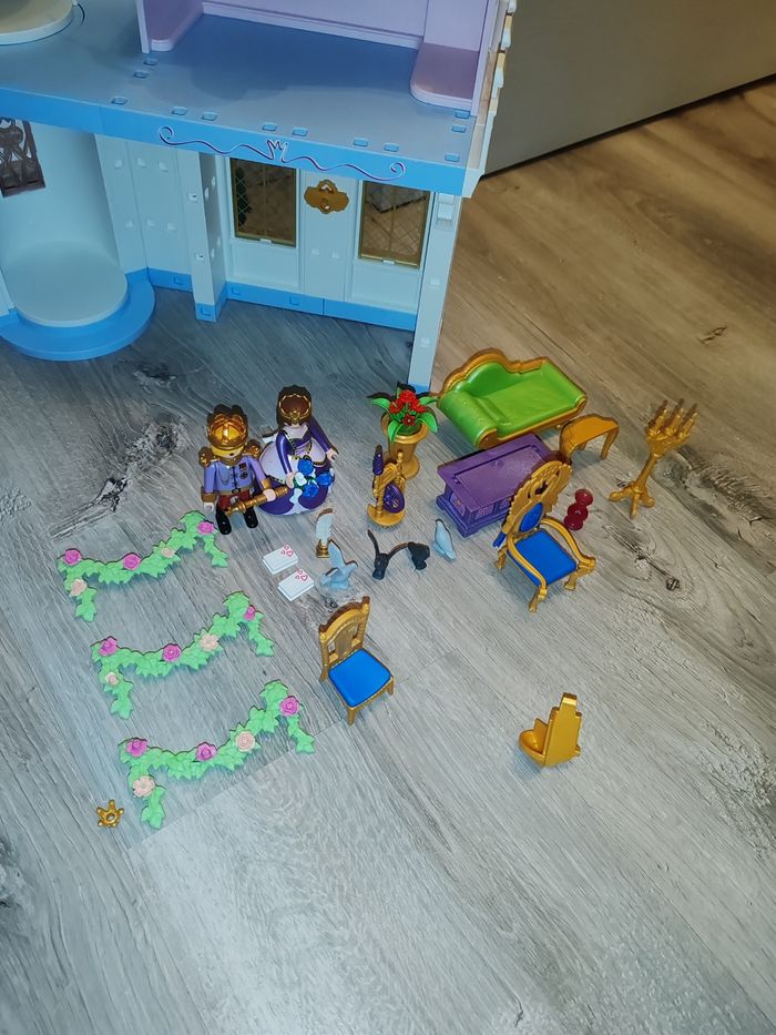 Bonjour Je vends le château princesse playmobil 6848 Il manque uniquement une décoration de verdure (j'en ai 3 au lieu de 4) Je n'ai malheureusement plus le carton pour un envoie il sera démonté en partie pas complètement