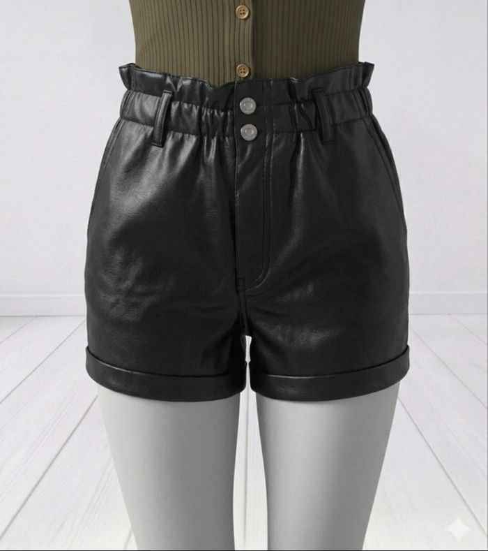 Mini short casual en cuir taille haute tendance printemps 2026 noir - photo numéro 3