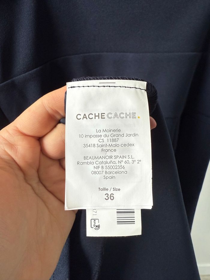 Robe évasée avec de fines bretelles réglables, effet croisé sur le devant de la poitrine, couleur bleu marine, taille S (36), de chez Cache Cache, en très bon état, porté 1 fois pour un événement, ouverture avec fermeture discrète sur le côté gauche de la robe, col en V, robe courte, longueur jusqu’au genoux robe de cérémonie, de soirée ou de tous les jours 97% polyester, 3% elasthanne, lavage en machine à 30ºC Acheté 25,99€