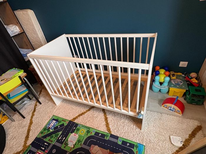 Lit bébé 60x120 + meuble à langer Sauthon + matelas – ensemble chambre bébé