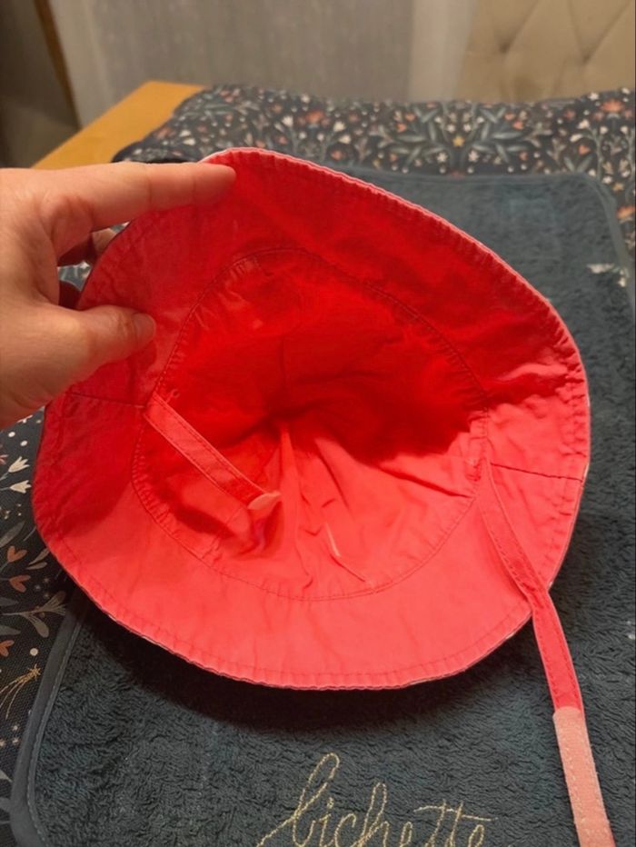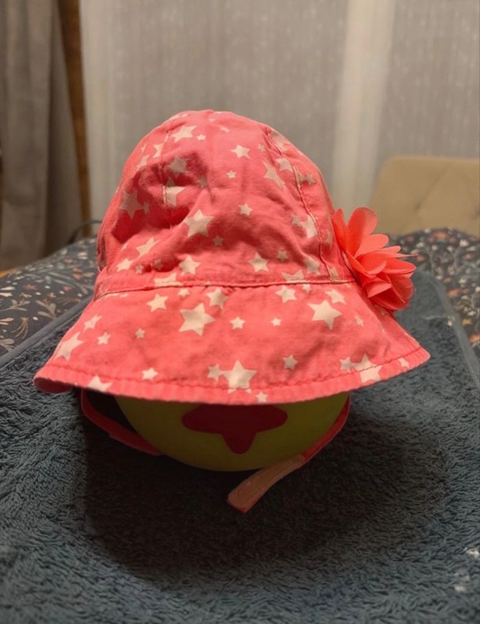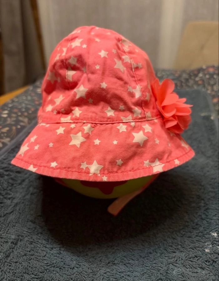 🌼 chapeau bébé en bon état, n’est pas réversible 🌼 il n’y a plus d’étiquette de taille, ma fille le portait vers 1 mois 🌸 coloris rose avec étoile blanche, parfait pour l’été 🪷 marque: je ne sais pas
