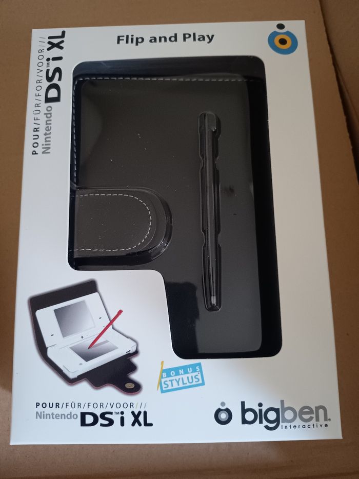 housse Flip and Play pour Nintendo DSi XL. ✔️ Protection complète de la console ✔️ Ouverture “flip” pratique pour jouer sans retirer la console ✔️ Intérieur doux pour éviter les rayures ✔️ Stylet inclus (bonus) 🖤 Couleur : noir 📦 État : neuf (dans l’emballage d’origine) 🏷️ Marque : Bigben Interactive Parfait pour protéger ta console tout en gardant un accès rapide !