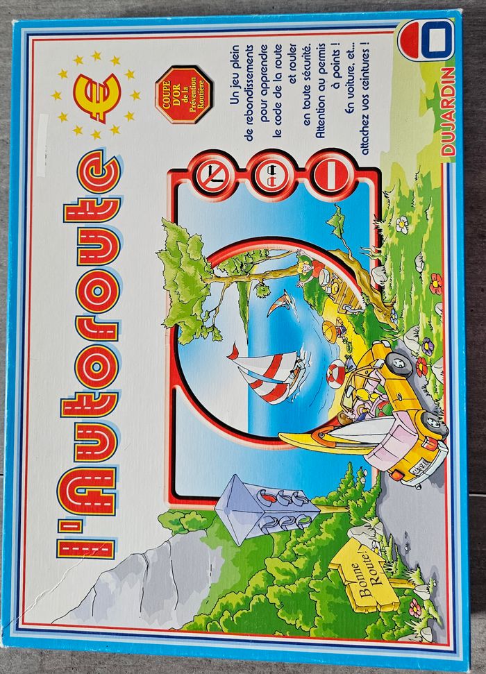 Je vends le jeu de société L'Autoroute de Dujardin, un grand classique pour apprendre le code de la route en s'amusant ! Parfait pour les enfants qui veulent devenir de bons conducteurs. - Type de produit : Jeu de société - Marque : Dujardin - Âge recommandé : à partir de 7 ans - Composition du lot : 1 plateau de jeu, pions, cartes, billets euros, dés, pièces de jeu - Fonctionnalités : Jeu éducatif sur le code de la route et la prévention routière - Accessoires inclus : Boîte d'origine, notice Un jeu idéal pour les familles ! État neuf (utilisé 2 ou 3 fois)