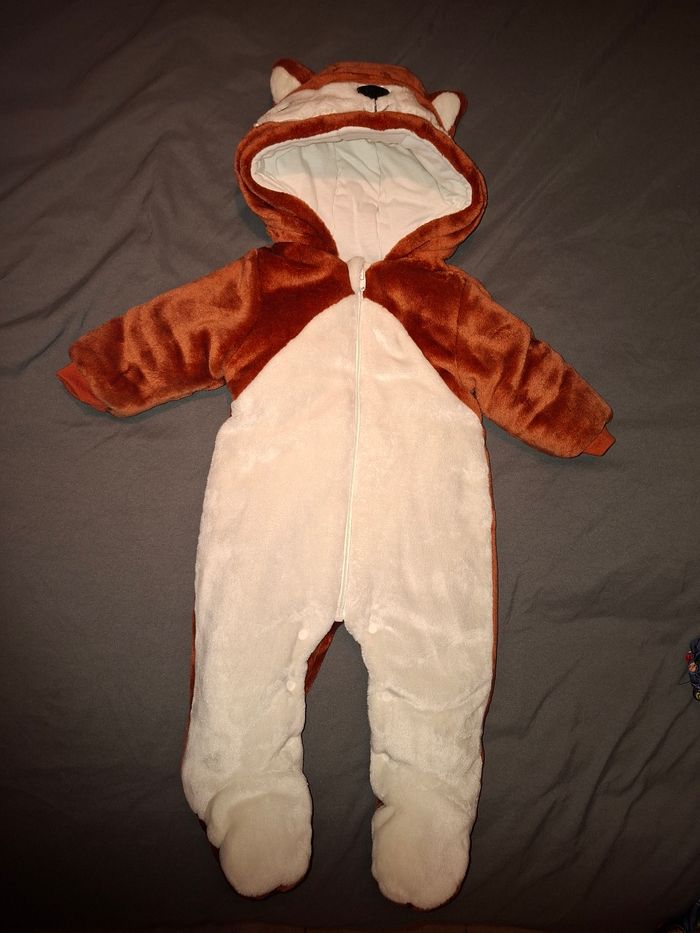 Combinaison Pilote renard pilou Taille 3 mois Se ferme avec fermeture éclair Ouverture entre jambes avec pressions Neuf n’a jamais servi