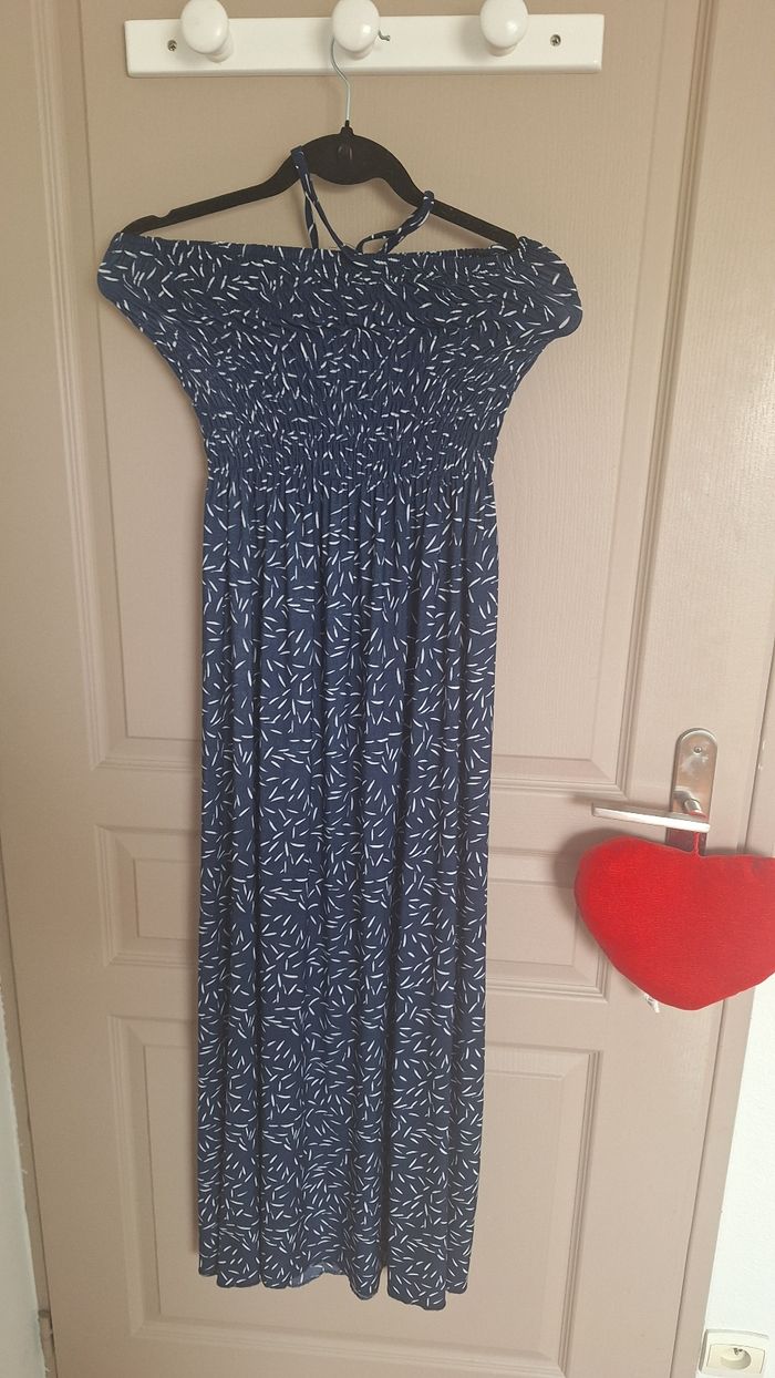 Robe longue Type bustier avec attache pour le cou Bleu et blanc De chez action action