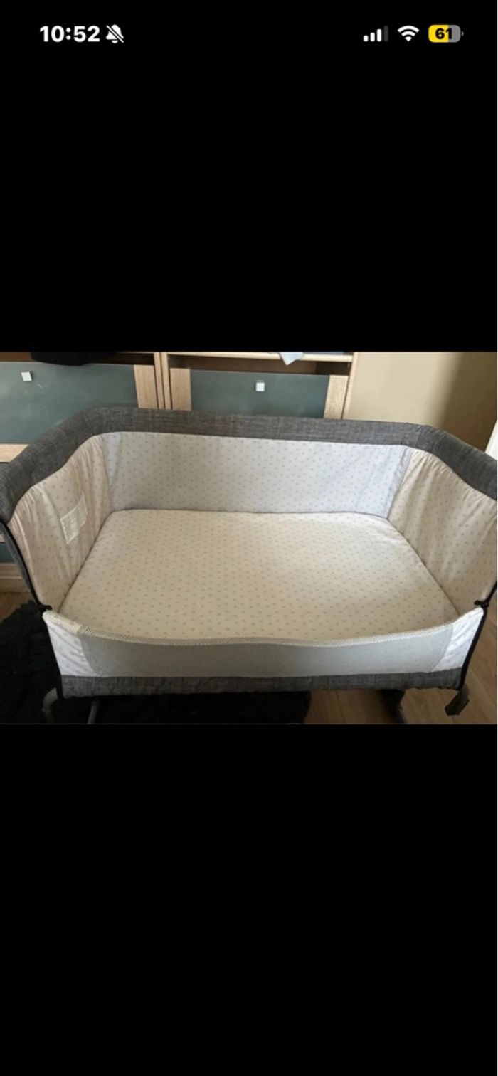 🍼 Cododo Hauck Sleep By Me – état comme neuf Je vends un berceau cododo Hauck Sleep By Me en très bon état, quasi comme neuf. ✔️ Idéal dès la naissance ✔️ Hauteur réglable (s’adapte à la plupart des lits) ✔️ Côté ouvrable ou fermé selon usage ✔️ Parfait pour l’allaitement et garder bébé proche la nuit 👉 Utilisé très peu, propre et bien entretenu 👉 Matelas et structure en excellent état 👉 Aucun défaut, prêt à l’emploi 💤 Très pratique pour les premières nuits de bébé, rassurant et confortable. Vendu dans le carton d’origine