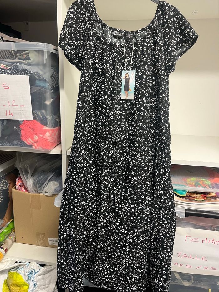 Robe Fleurie Fluide – Bleu Bonheur – Taille 54 (Neuve)