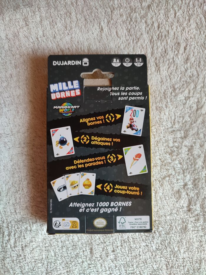 Jeu Mille Bornes Mario Kart. Neuf jamais ouvert ! À partir de 7 ans. 2 à 6 joueurs Prix d'origine 15€ je le vend 6€ Envoi rapide 📦