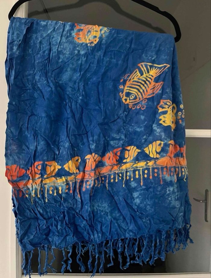 Paréo Bleu avec motifs de poissons 💯 viscose Il y a juste une minuscule tache sinon impeccable