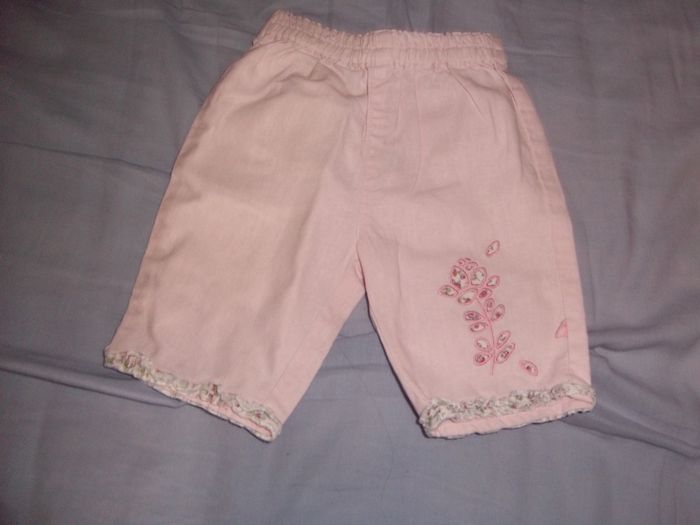 Pantalon rose avec un dessin de fleur et un liseré de fleurs