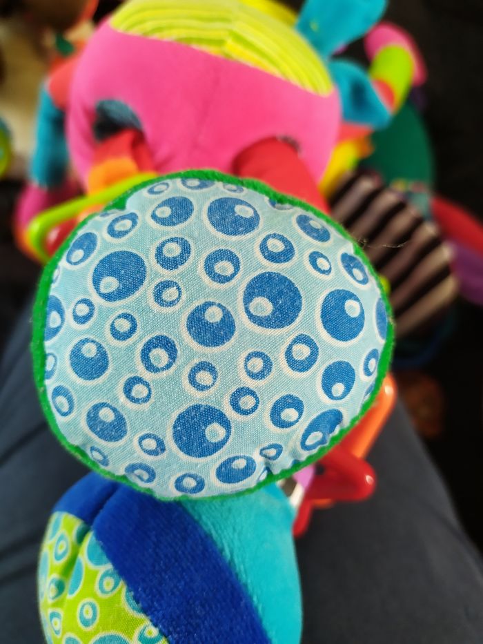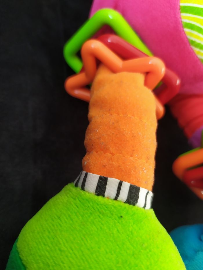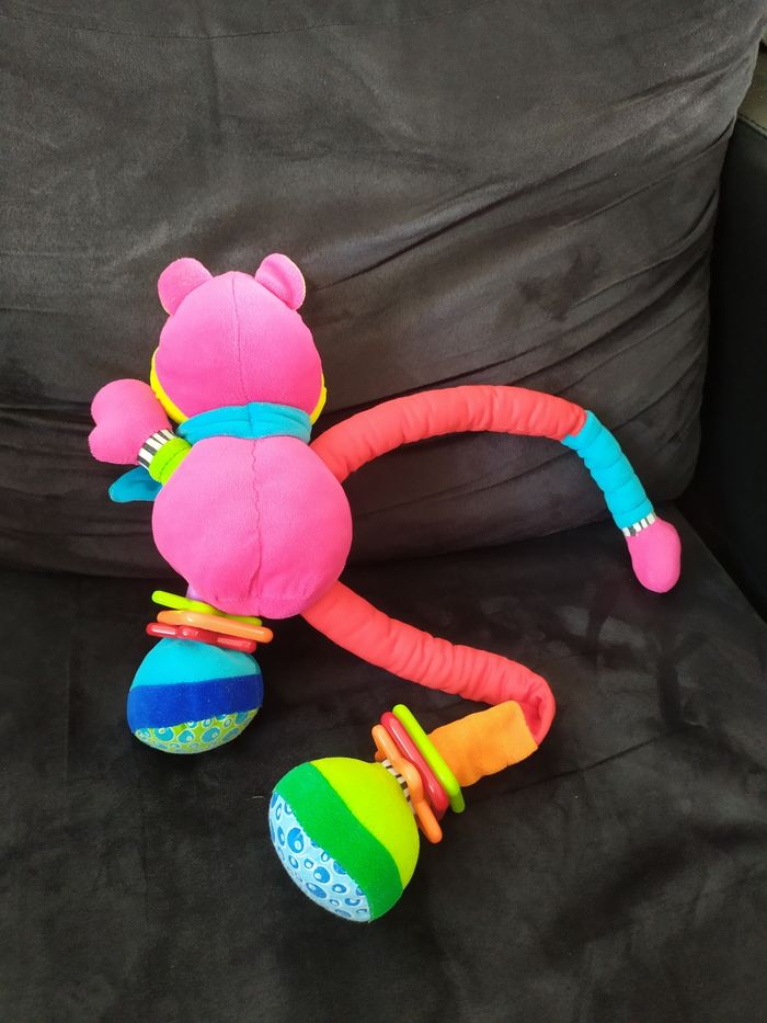 Les bras et les jambes sont modulables Bruit de grelot quand on secoue En bon état usure d'utilisation et quelques bouloches Plus d'étiquettes