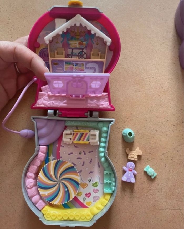 Lot de 3 Polly pocket : - la plage des dauphins de 2020 - scène pailletée de 2021 - machine à bonbons de 2020 Vous achetez ce qui se trouve sur les photos