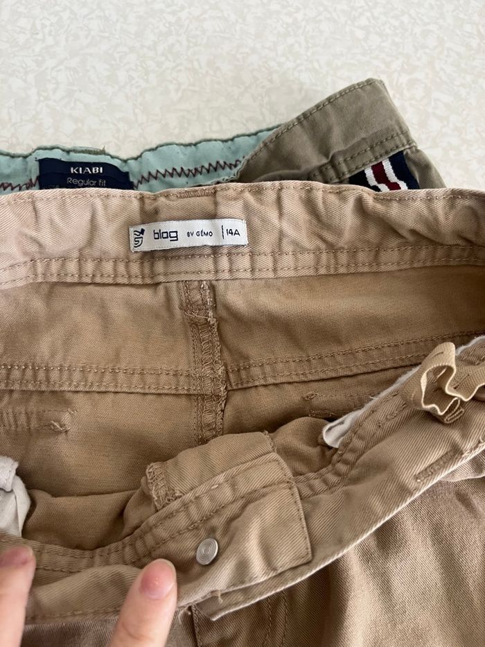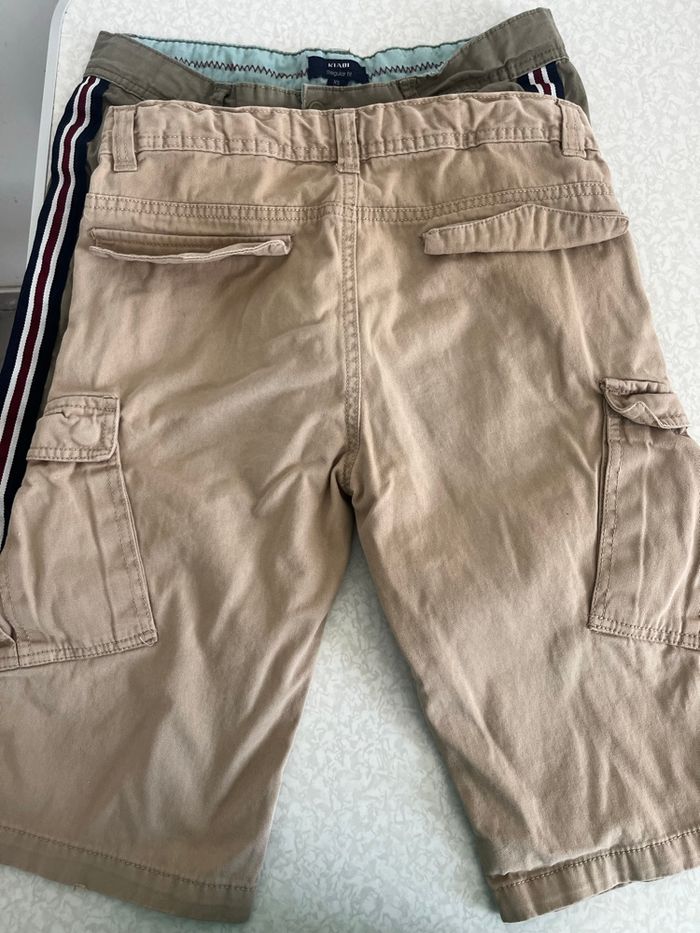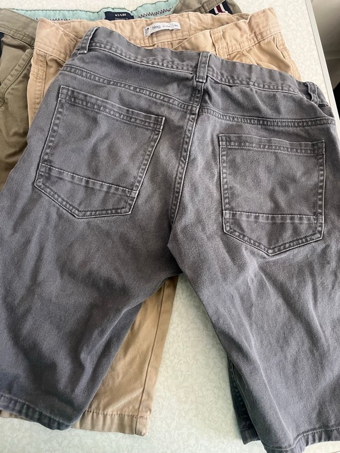 lot de 3 shorts pour garçon en très bon état, parfaits pour l'été. Tous possèdent une taille ajustable avec élastiques intérieurs pour un maintien optimal sauf le gris Le lot comprend : • 1 bermuda Cargo Beige (Gémo) : Taille 14 ans. Style baroudeur avec poches latérales. • 1 bermuda Gris Anthracite (Kiabi) : Taille XS (14 ans / 158-164 cm). Coupe droite type denim . • 1 bermuda Kaki avec bande latérale (Kiabi) : Taille XS (14 ans / 158-164 cm). Détail sport avec bande tricolore sur le côté. ✅ État : Très bon état général, pas de taches ni de trous. ✅ Maison non-fumeur