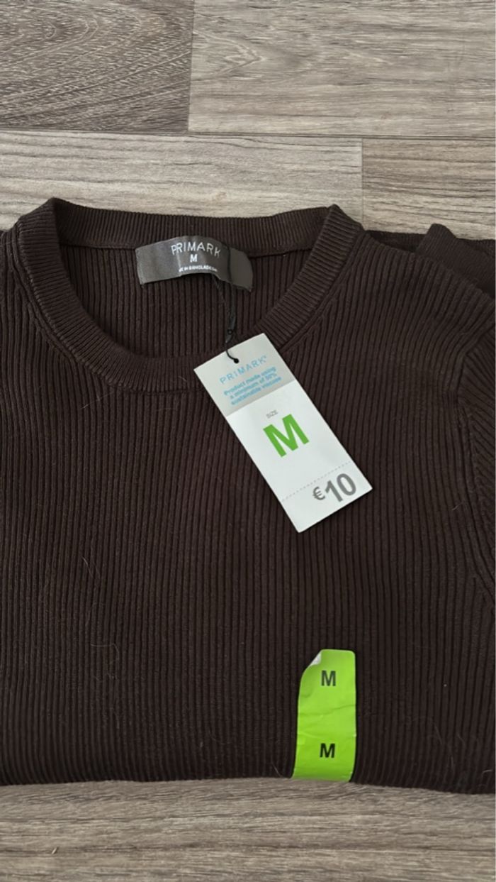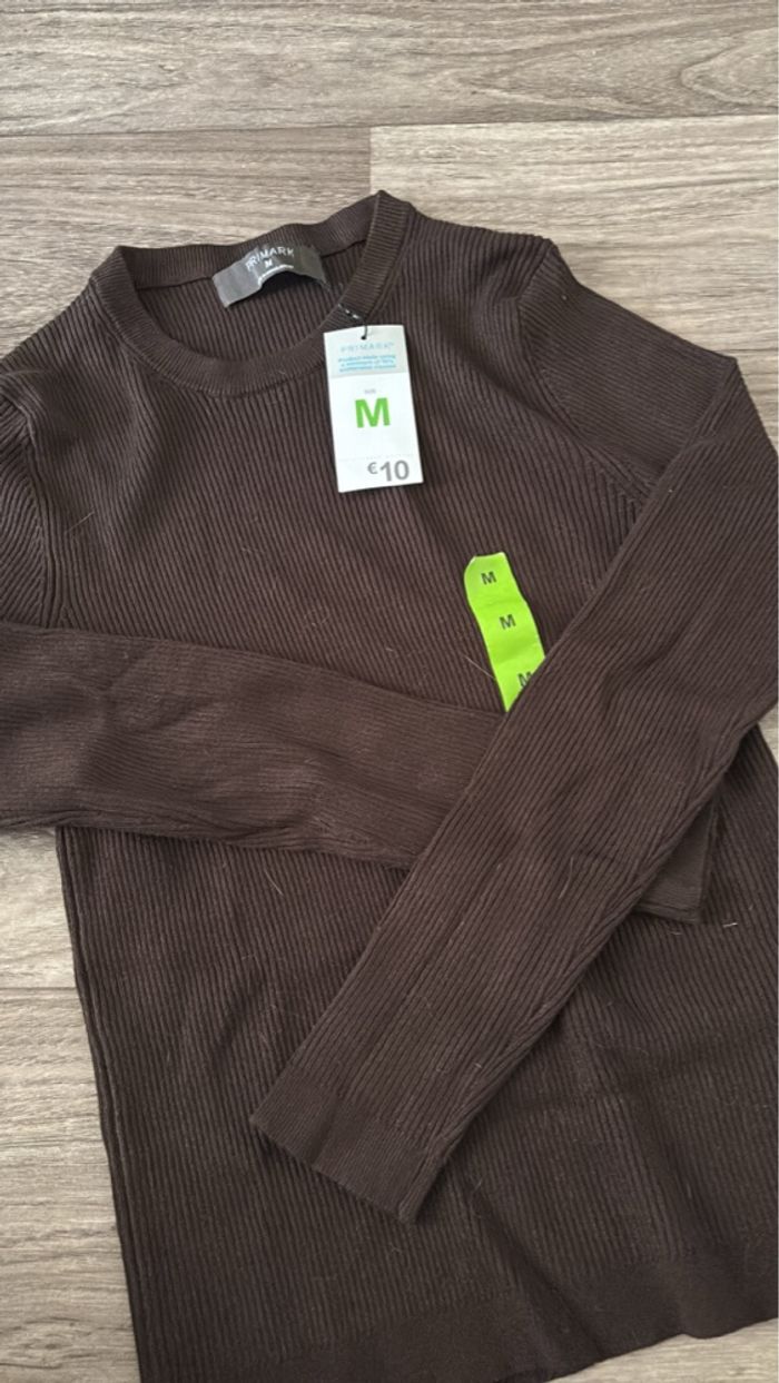 Haut manche longue marron côtelé primark en taille M, neuf avec étiquette.