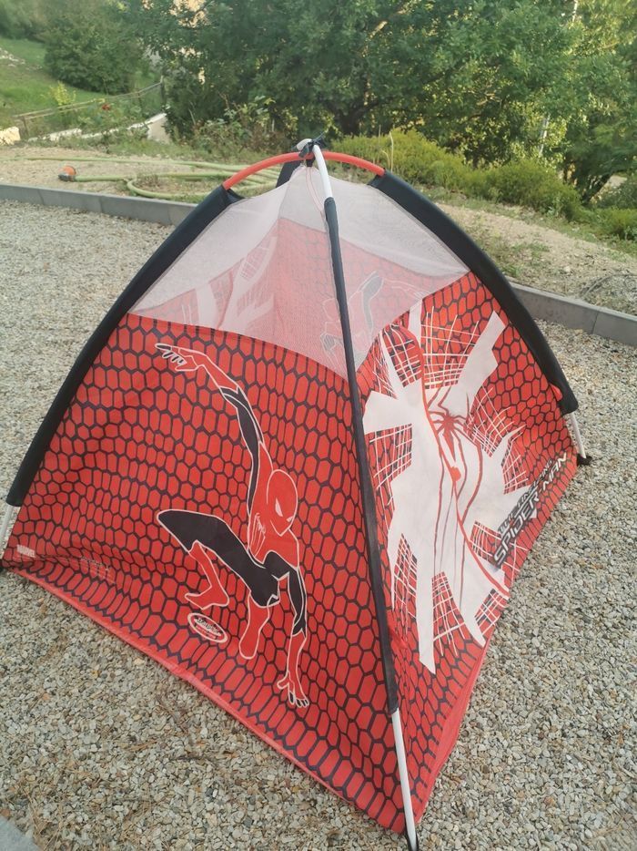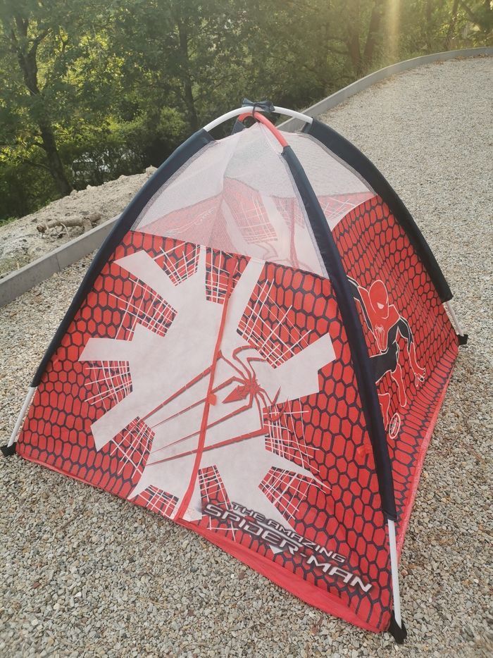 Tente igloo Spiderman Intérieure / Extérieure Largeur 110 cm Longueur 110 cm Hauteur 90 cm Fermeture par scratch Nous ne l'avons jamais exposée à l'extérieur. N'hésitez pas à me contacter pour constituer un lot si plusieurs articles vous intéressent Objet pouvant être remis en mains propres en IdF. Lieu à définir : ex Bibliothèque François Mitterrand, Gare de Lyon, Paris Austerlitz, La Défense, Etampes, etc..