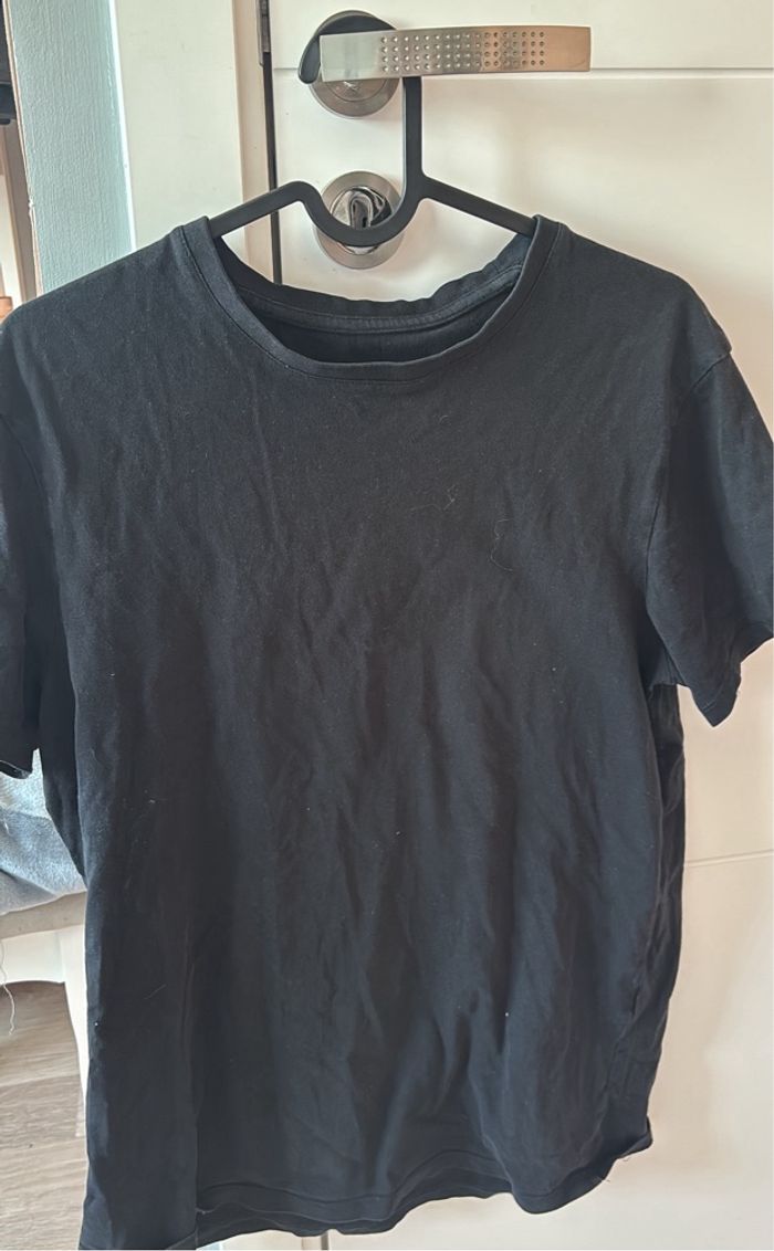 T-shirt noir basique en très bon état. Coupe simple et confortable, indispensable dans une garde-robe. Facile à porter avec tout (jean, jogging, jupe…).
