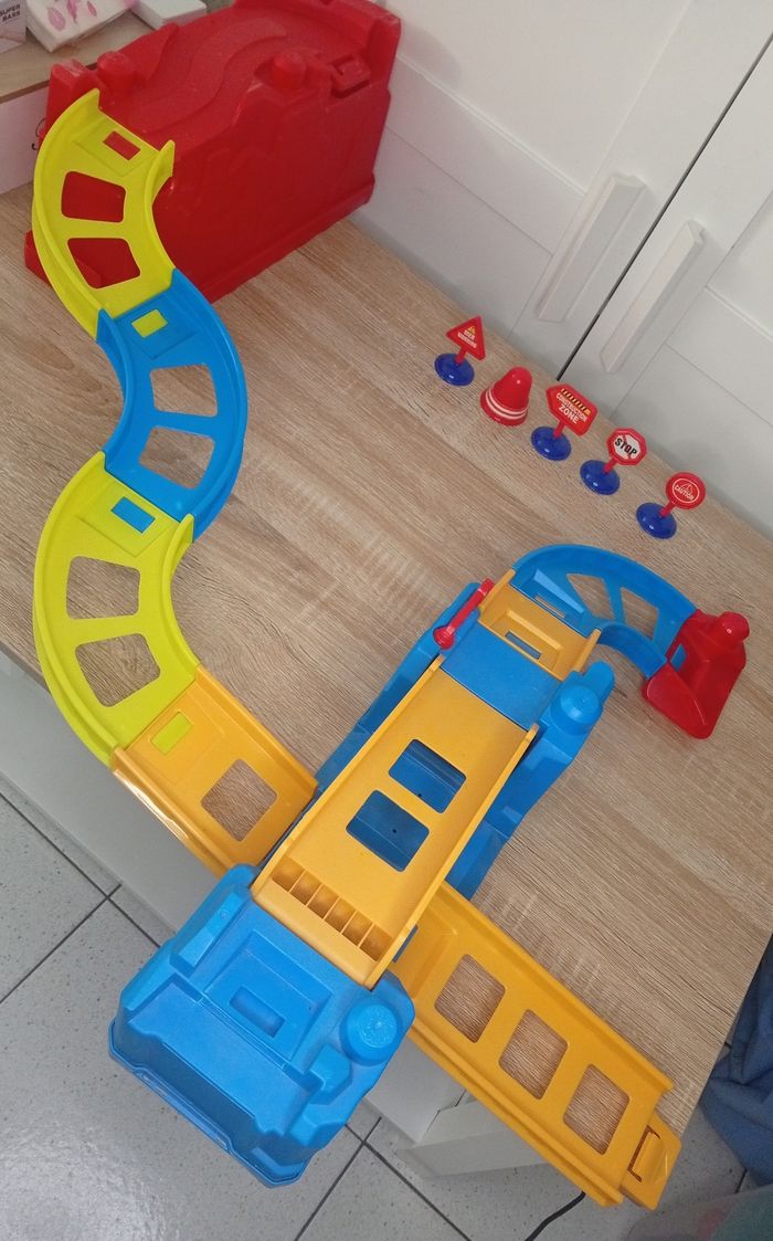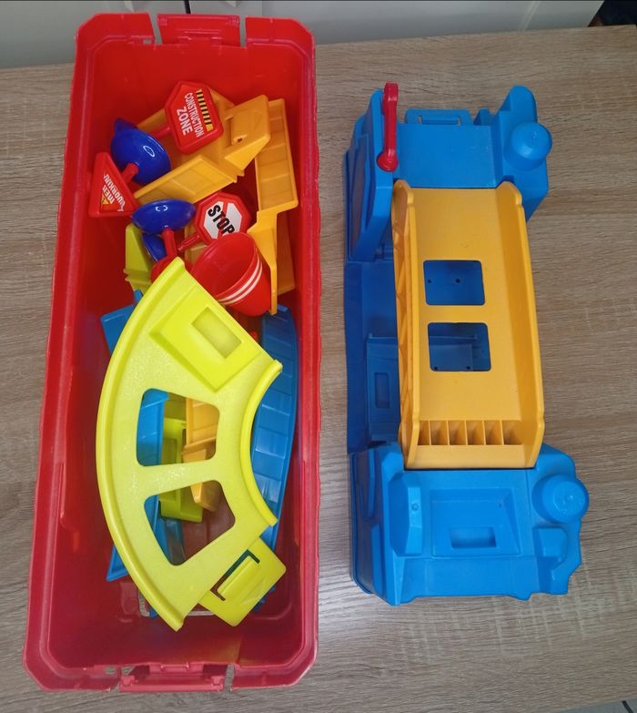 Je vends ce circuit garage Mega Bloks coloré et amusant, parfait pour les enfants qui adorent les jeux de construction ! - Type de produit : Voitures & circuits - Marque : Mega Bloks - Âge recommandé : De 4 à 6 ans - Composition du lot : 1 garage avec structure modulable, panneaux signalisation - Matière : Plastique - Couleurs : Bleu, rouge et jaune Bon état. N'hésitez pas à me contacter pour plus d'infos ou de photos !