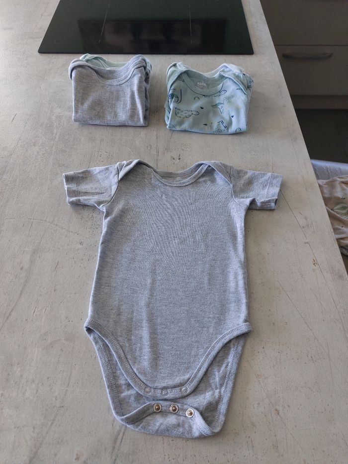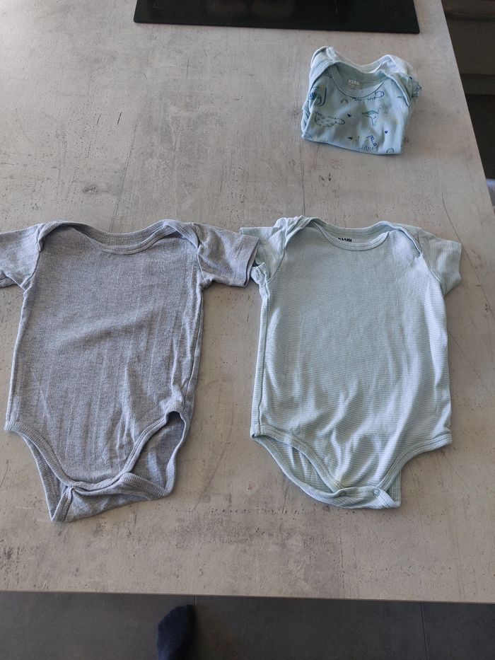 Lot 3 bodies manches longues 1 mois - Kiabi - comme neufs